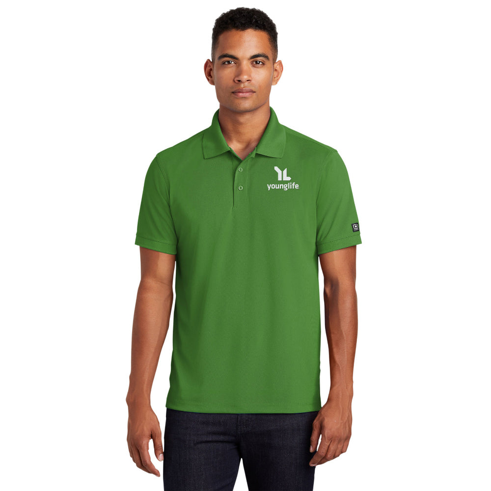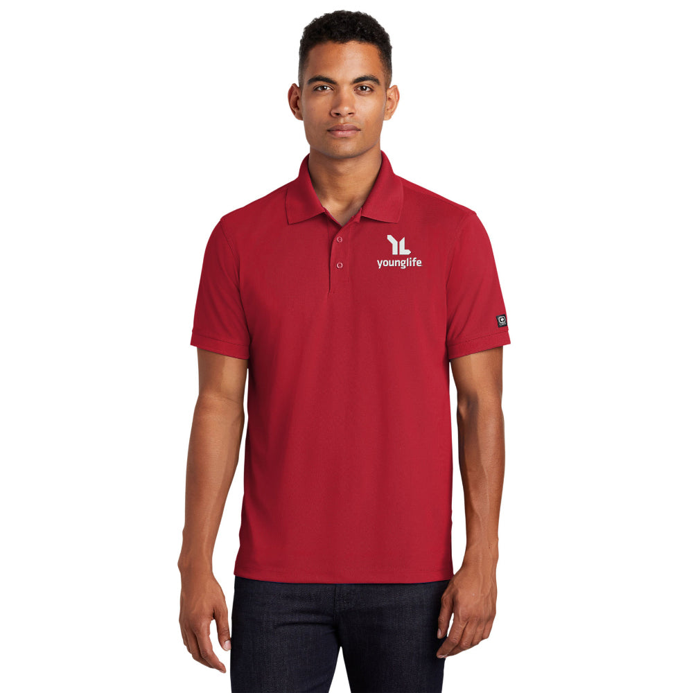 - 5-ounce, 100% poly pique with stay-cool wicking technology