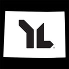Window decal in the shape of Colorado. YL logo cut out. 3" x 2"
