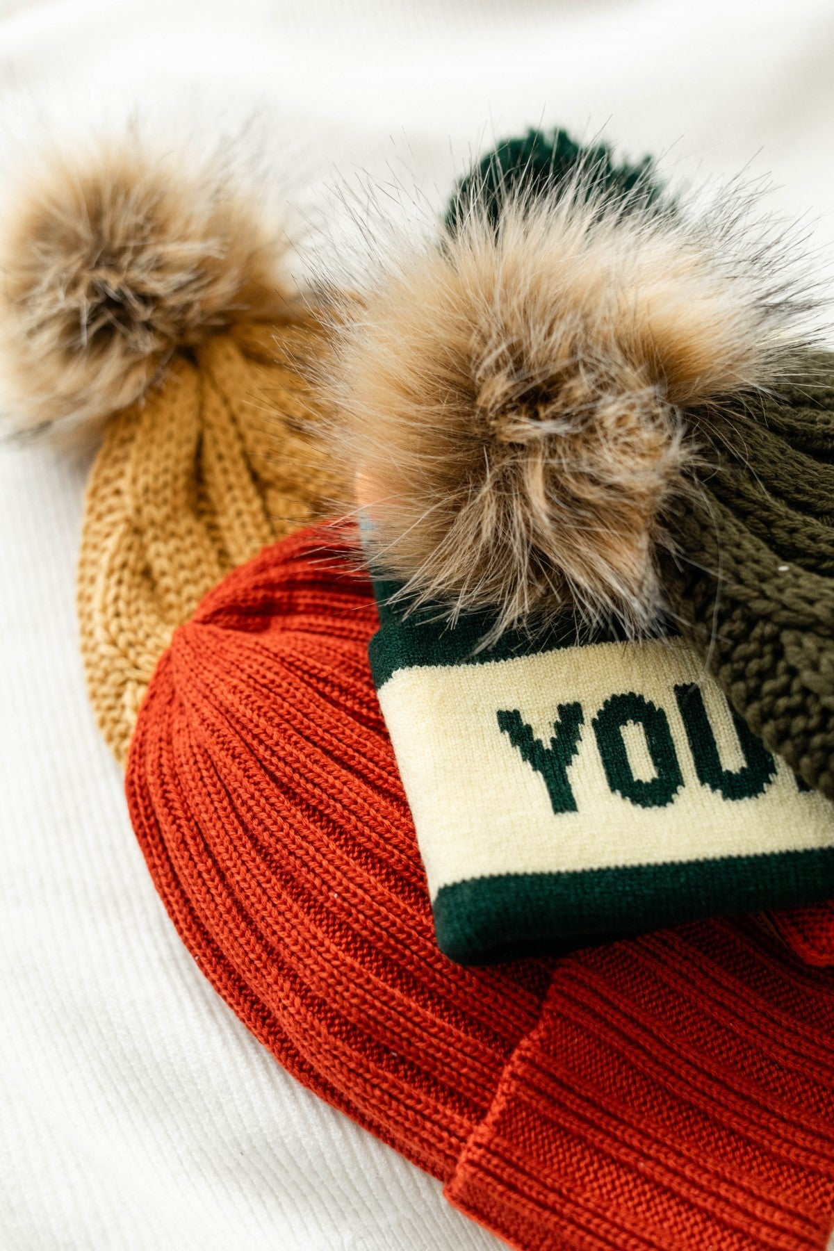 Our Knit Pom Pom Beanies will keep you warm and toasty all season long!