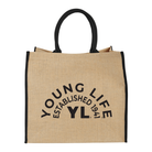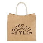 Carry your favorite essentials in style with the spacious yet lightweight Large Jute Tote, the perfect bag for transporting books, clothing, snacks, electronics, and more. It features an open main compartment and double 17" handles that make this jute bag easy to carry anywhere. Its spacious surface is perfect for decorating with your logo, subject to certain restrictions due to the nature of the material.