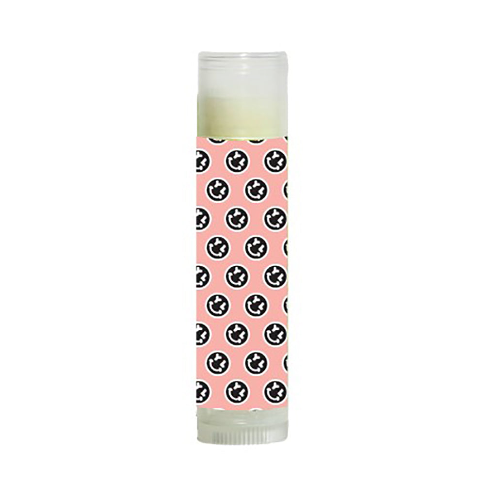 - Patterned design tube with neutral color lip balm