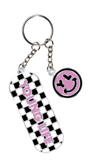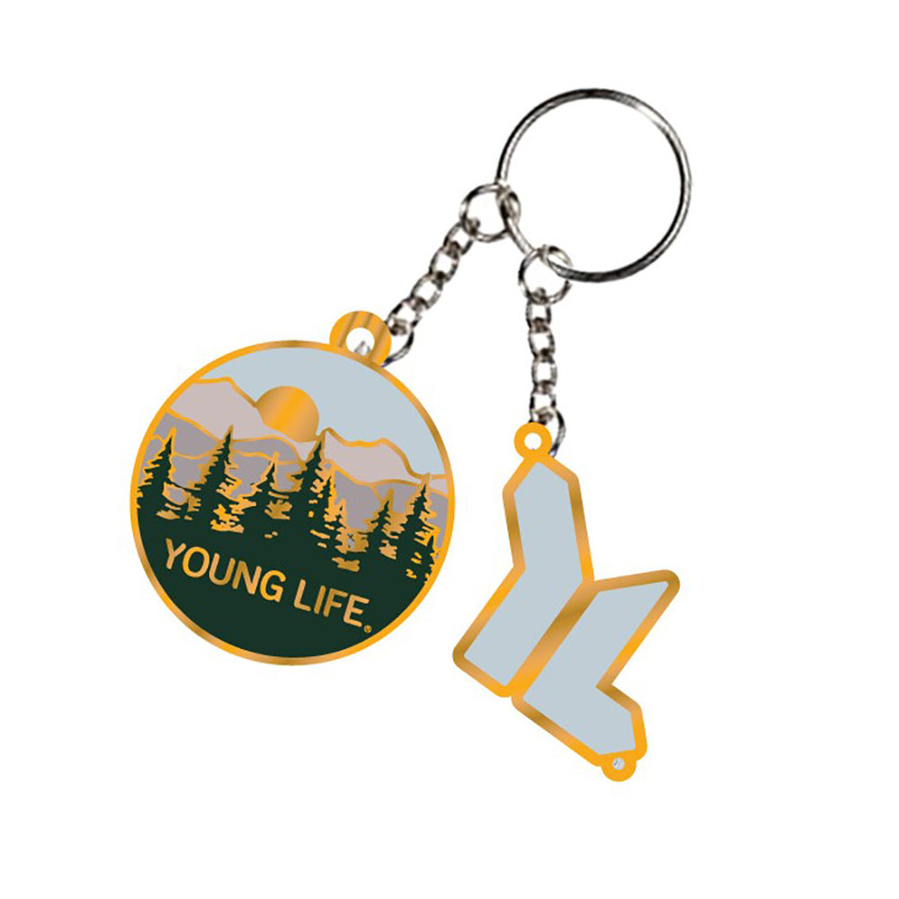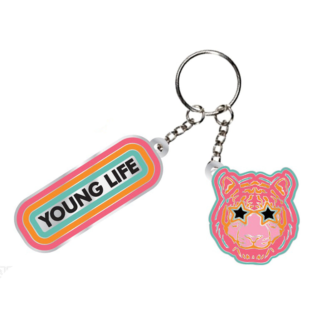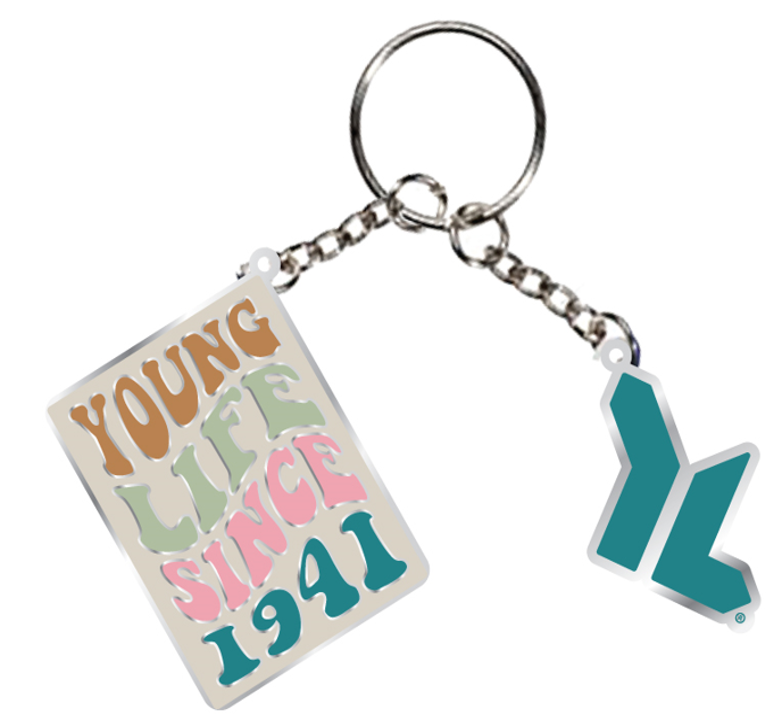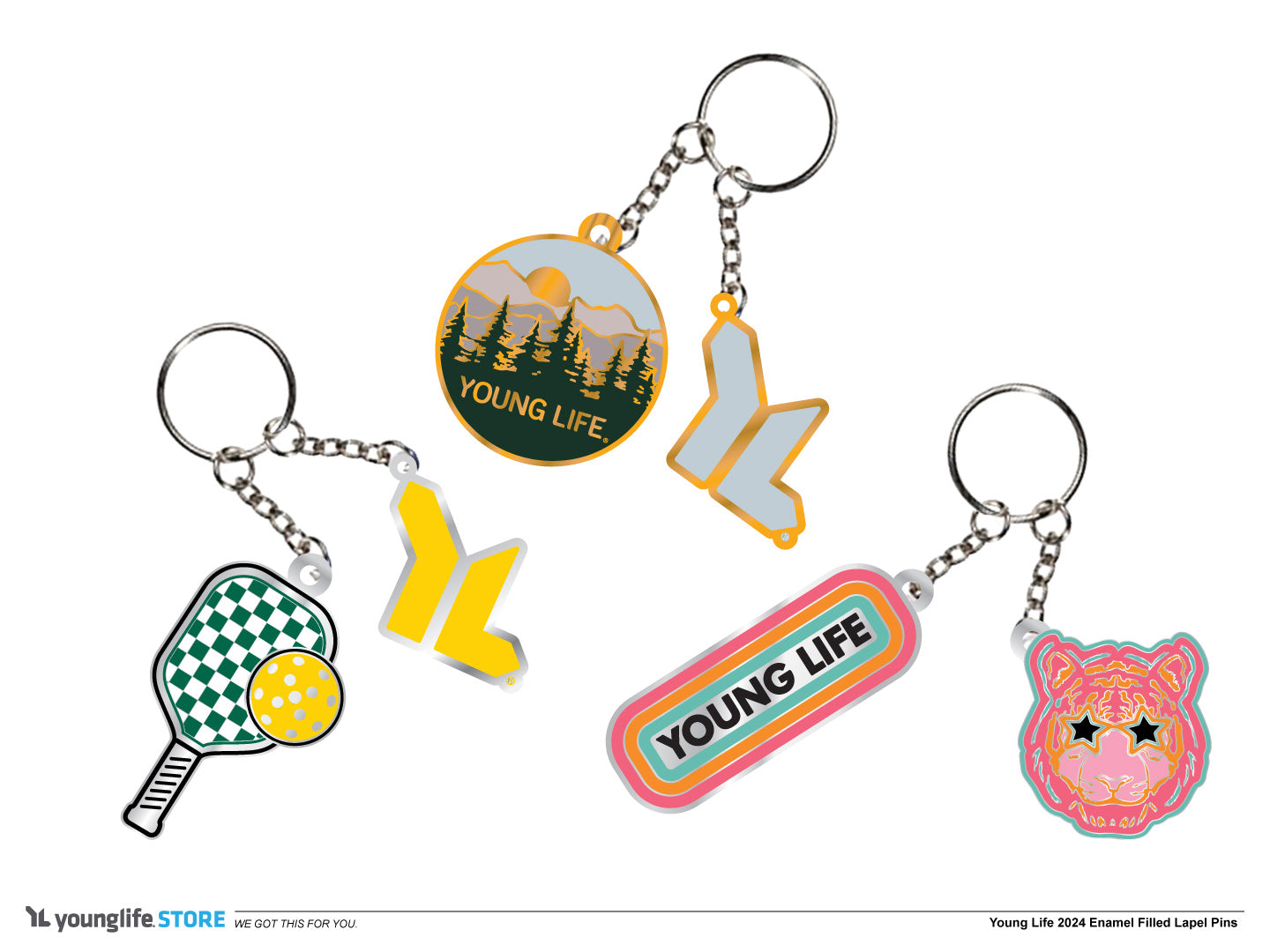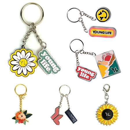 Quality metal keychain charms with unique and fun Young Life designs. Colorful enamel filling with raised texture. Approximately 1" to 1.5" wide.