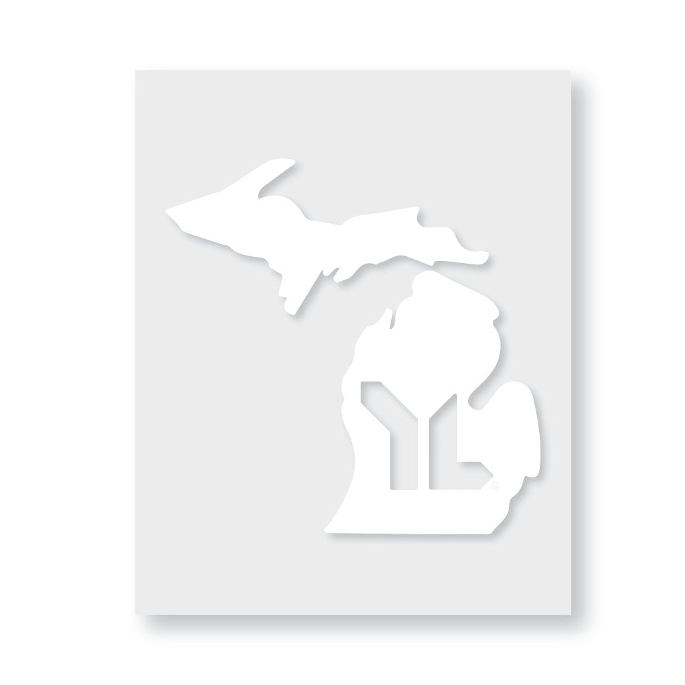 Window decal in the shape of Michigan. YL logo cut out. 3.5" x 3.5"