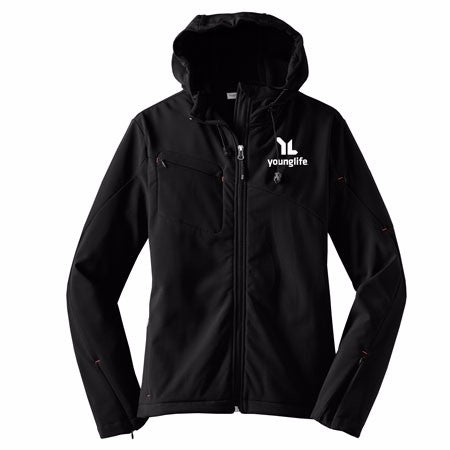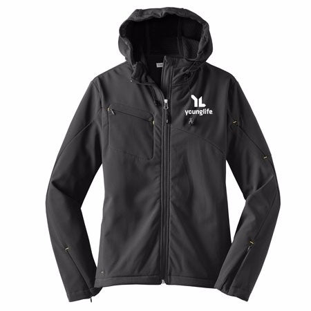 This hooded soft shell stands up to the elements and stands out with a texture and bar tack details. Highly breathable and soft, this water resistant jacket is just right for the workday or the weekend. A hood and zippered sleeve vents and more function.