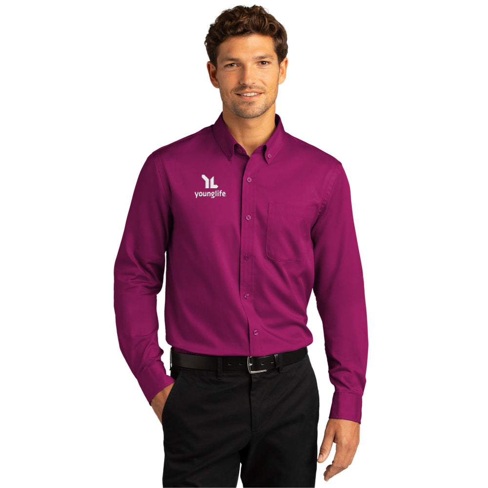 The ultimate in professional performance, this wrinkle-resistant shirt also releases stains. The soft, smooth fabric gives you a polished look that’s comfortable enough for year-round wear.