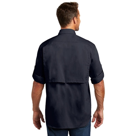 You can't control the weather, so you might as well dress for it. The quick-drying design of this lightweight, woven shirt sheds sweat to regulate your body temperature in a range of conditions. A mesh-lined vent adds breathability, while a stain-resistant fabric keeps the shirt looking good.