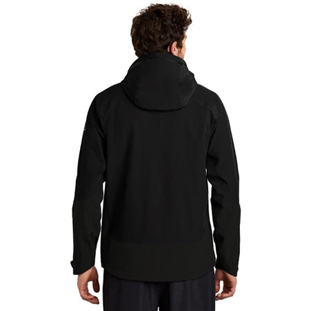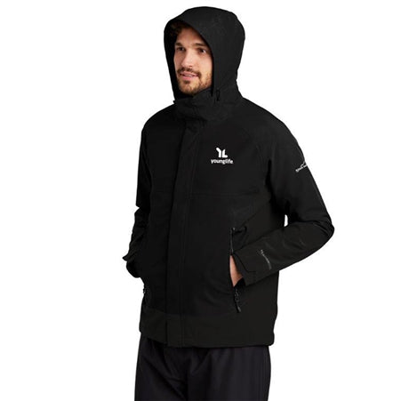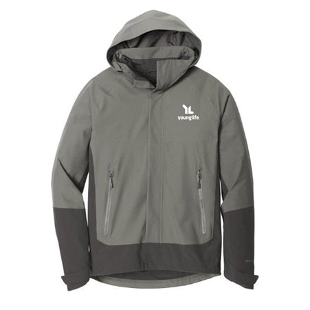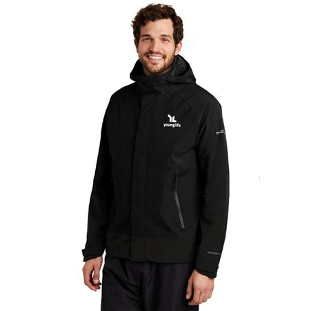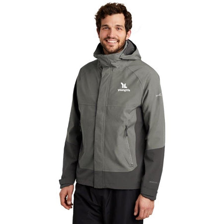 Two element-fighting WeatherEdge 5K/5K fabrics come together in this jacket for highly waterproof, breathable performance. Fully seam-sealed, this jacket also features the exclusive StormRepel ® durable water-repellent (DWR) coating for additional weather protection. Four-way stretch for easy mobility. Adjustable hood with locking drawcord, waterproof Vislon ® front zippered pockets, adjustable tab cuffs with hook and loop closures, embroidery access pocket. Adjustable locking drawcord hem. Contrast Eddie Bauer and WeatherEdge logos heat transfers on left sleeve. Made of 94/6 poly/spandex and 92/8 poly/spandex.