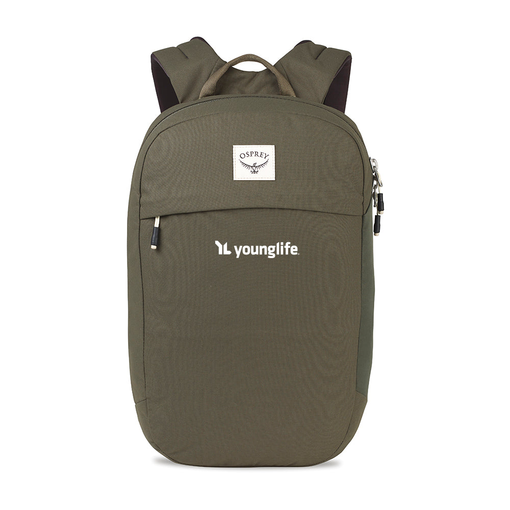 Osprey Arcane recycled polyester pack that holds 15" or small laptops.