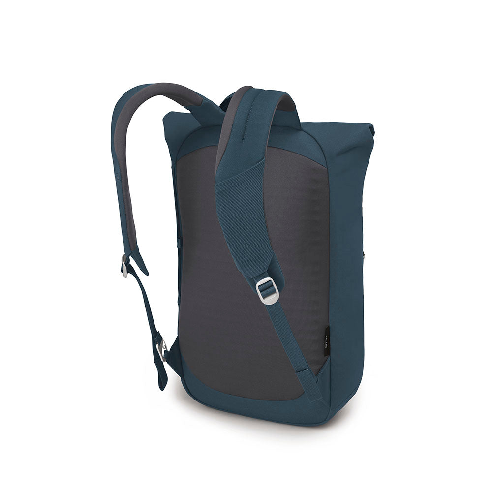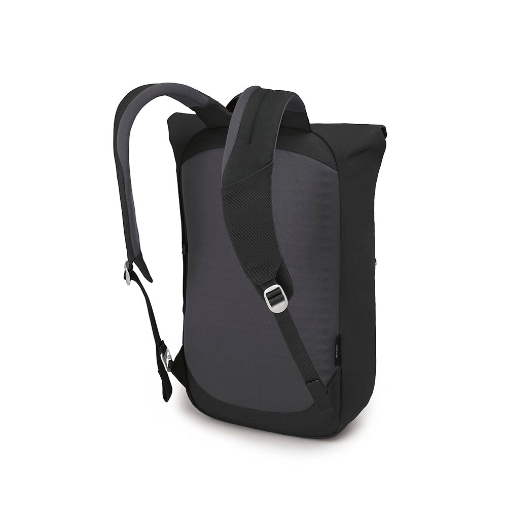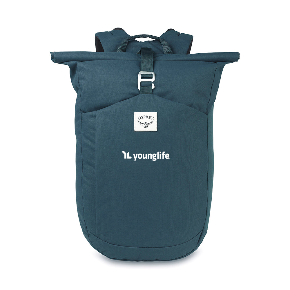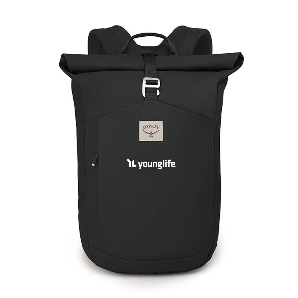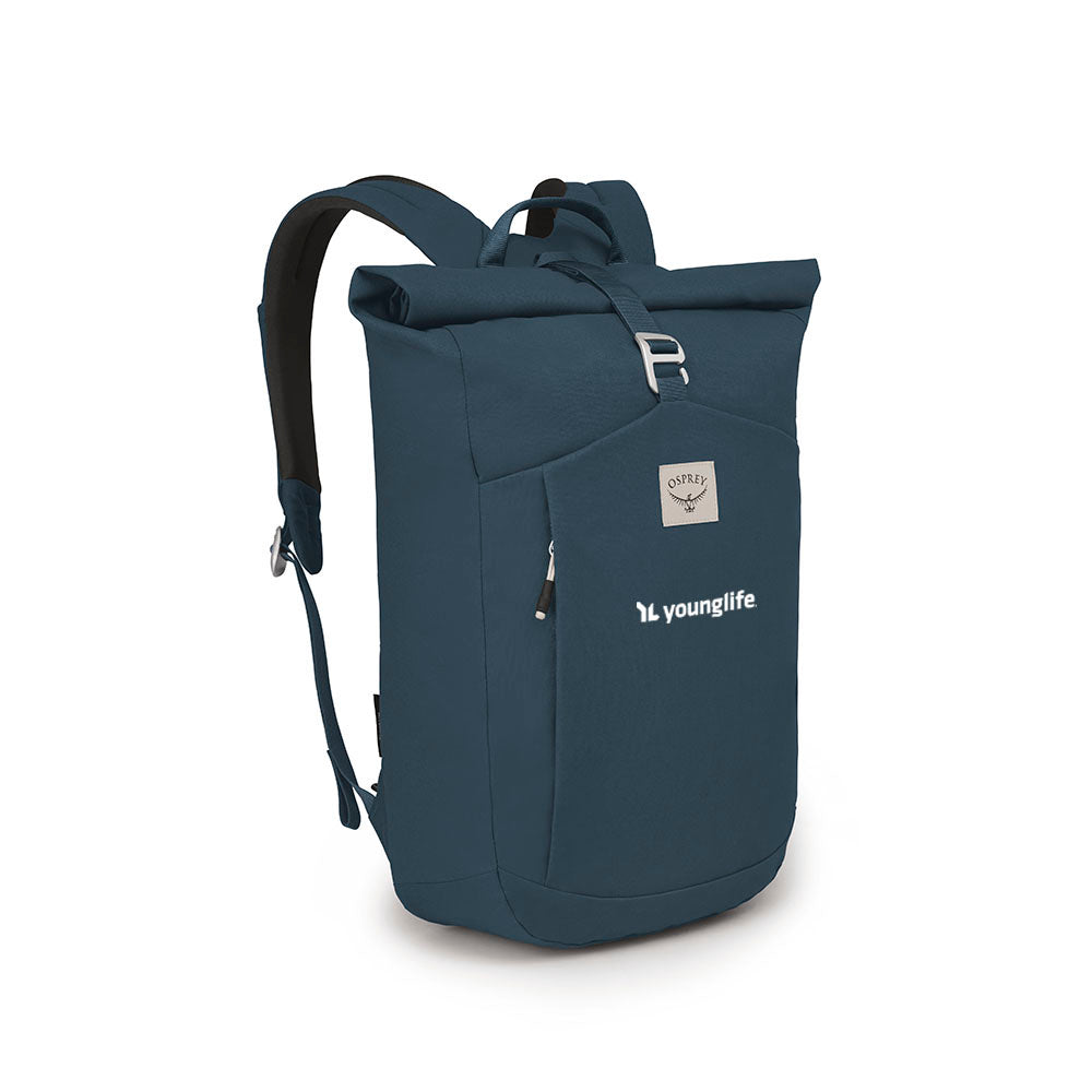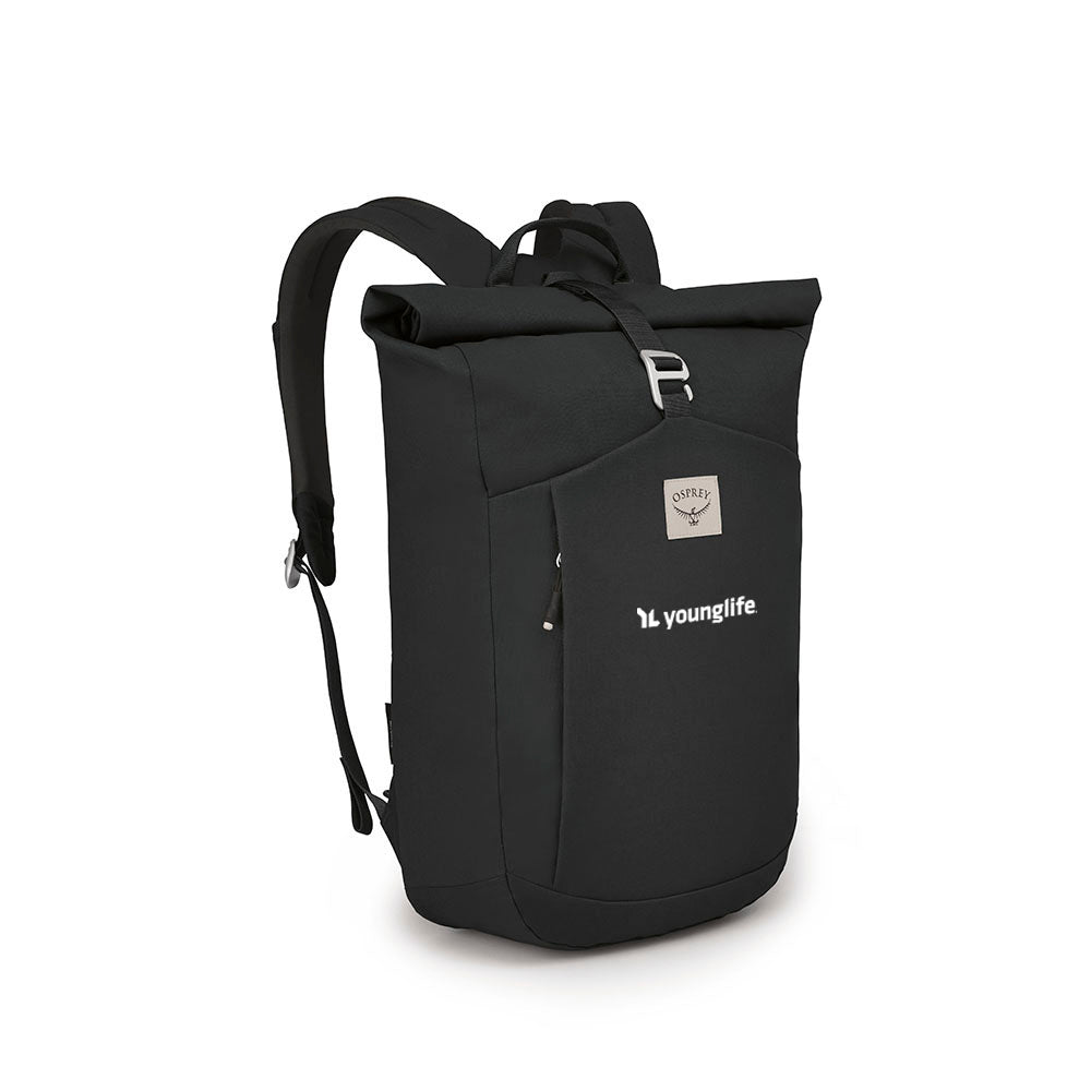 Osprey Arcane roll top 500 Denier recycled polyester pack for devices 15" or smaller. Assorted pockets and shoulder straps.