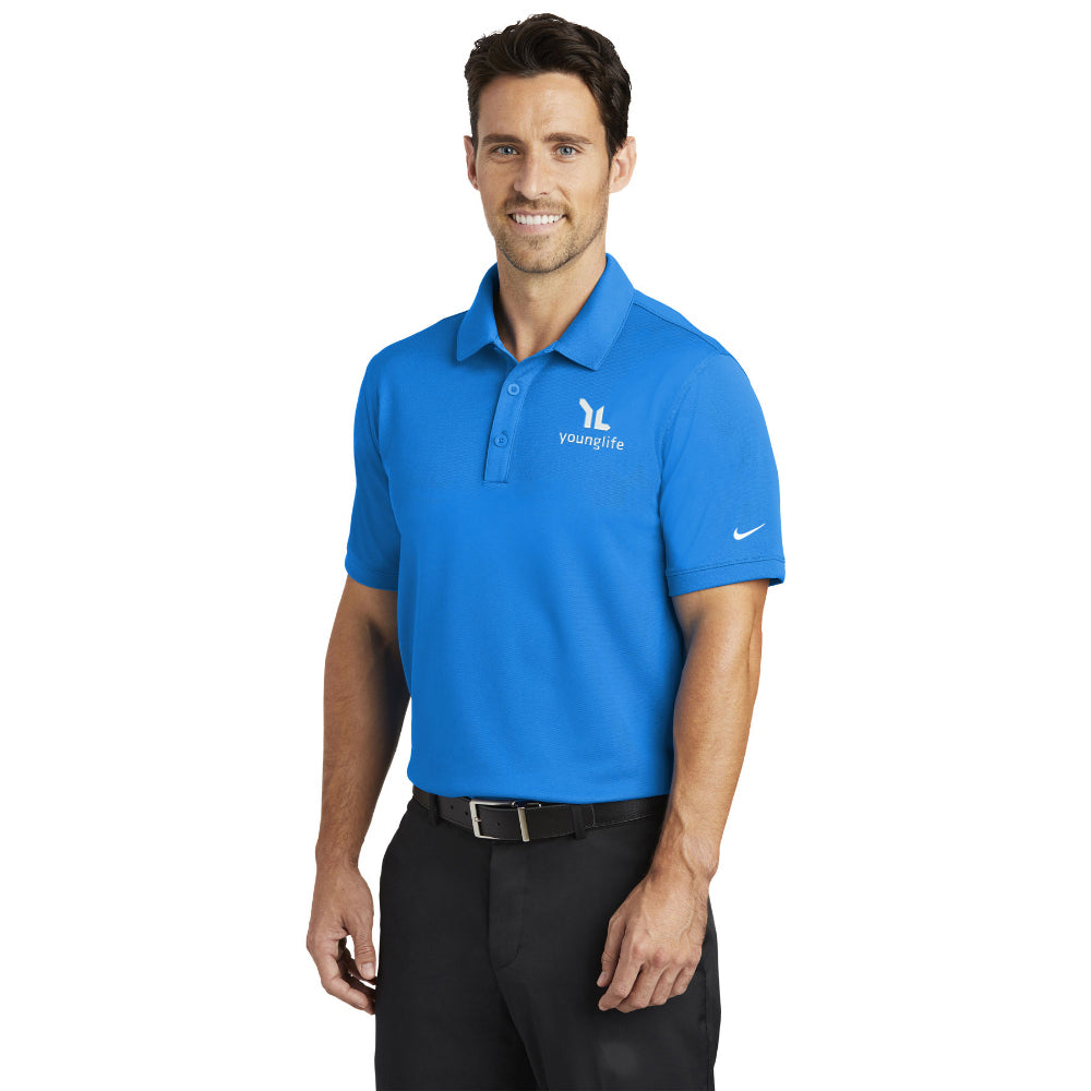 Dri-FIT moisture management technology achieves maximum comfort, while an iconic look gives this pique polo modern style. Design details include a self-fabric collar, dyed-to-match buttons and open hem sleeves. Three-button placket. The contrast Swoosh design trademark is embroidered on the left sleeve.Made of 4.7-ounce, 100% polyester pique Dri-FIT fabric. Modern fit is slightly tailored through the chest, arms and waist.