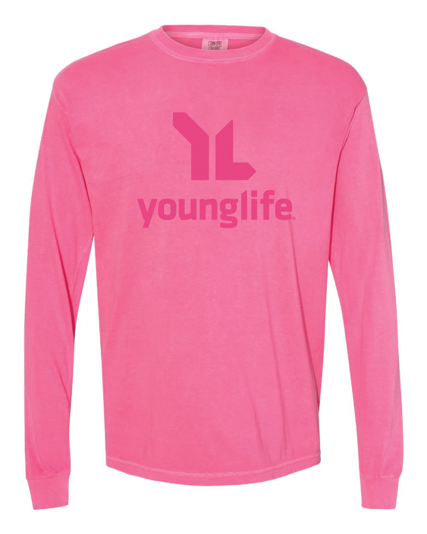 Cozy up next to the campfire in this Comfort Colors Long-sleeve garment dyed shirt! This is a new twist on an old classic featuring the YL Primary Stacked logo in a unique tone-on-tone print. The perfect gift for Young Lifer's of all ages!