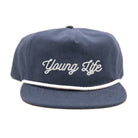 Our Corduroy Script Snapbacks are ultra comfortable and feature a braided rope across the front bill. Available in Blue, Red, and Tan.