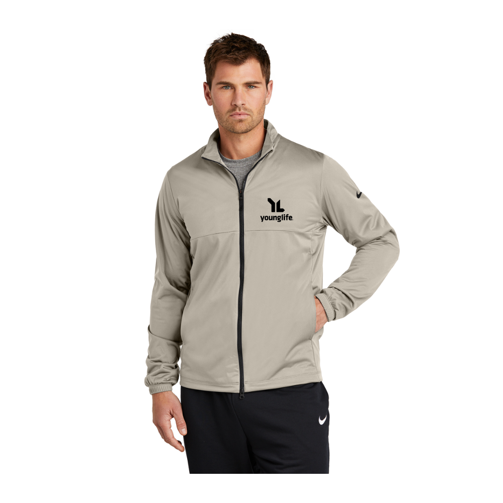 Designed with Storm-FIT technology to shield you from wind and rain, this sporty performance jacket has stretch for movement. Features a zip-through collar, side pockets and elastic cuffs. The contrast heat transfer Swoosh logo is on the left sleeve. Made of 3.7-ounce, 100% polyester with a durable water-repellent (DWR) coating and mesh lining.