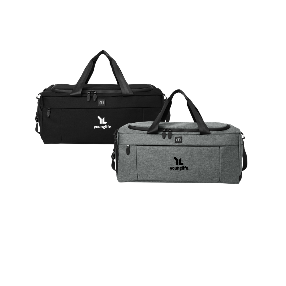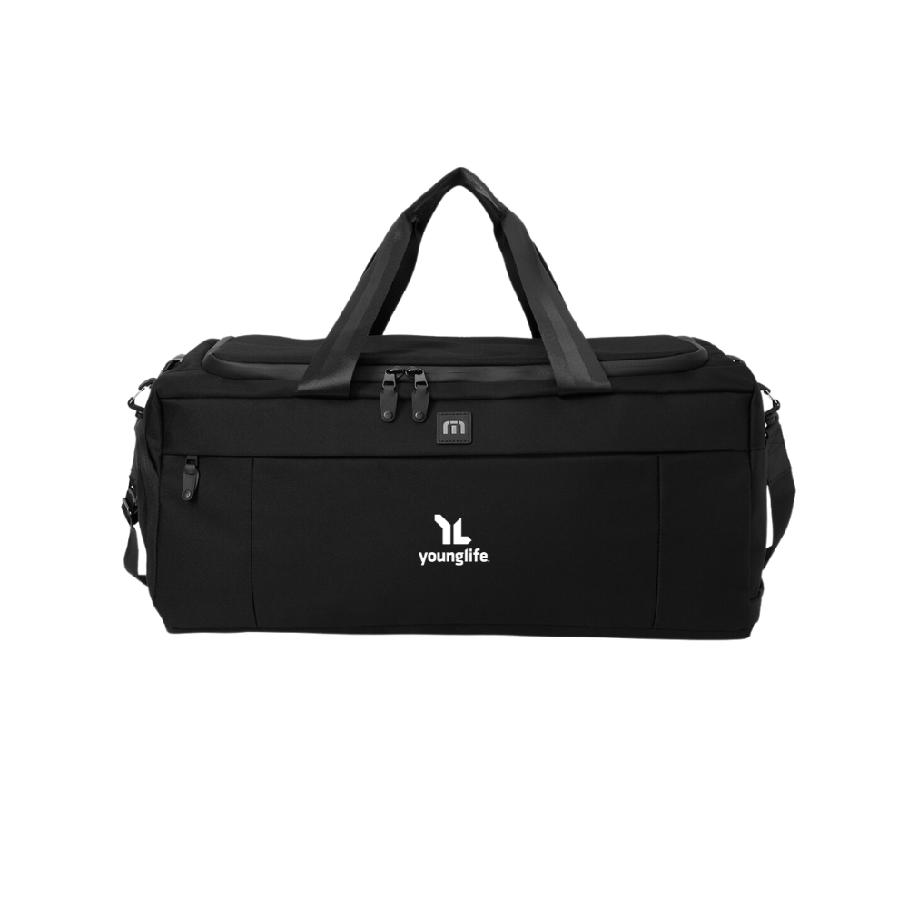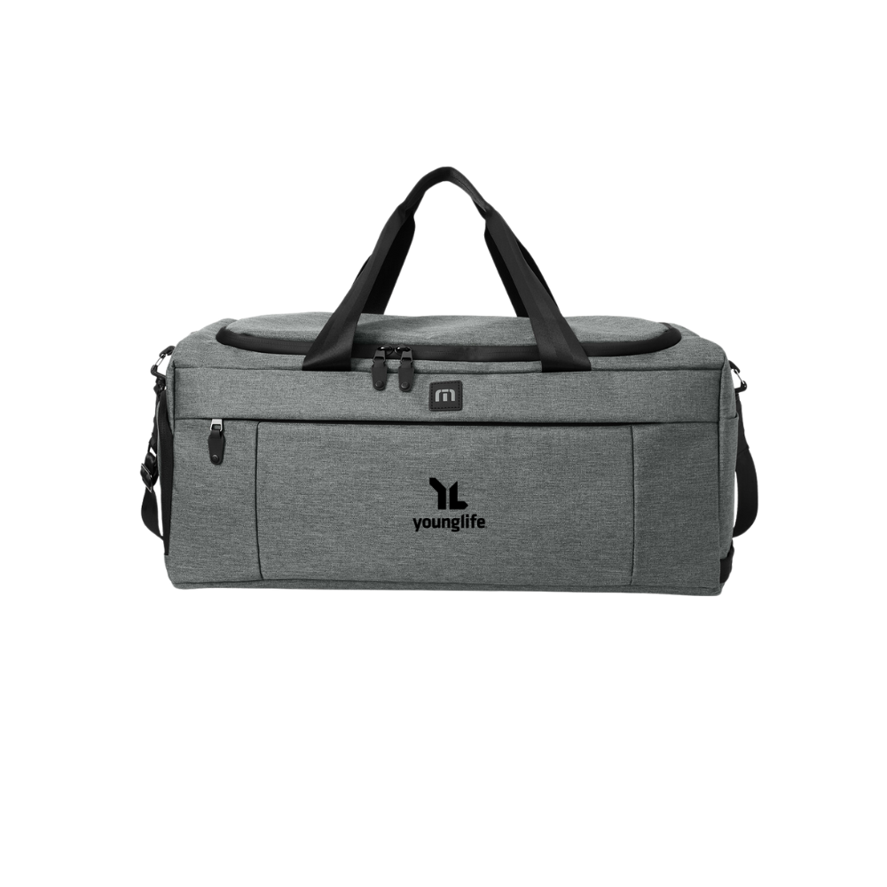 - Detachable, adjustable, padded shoulder strap with printed TravisMathew script logo