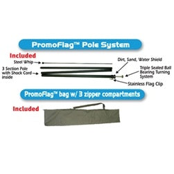 No setup cost! Free shipping! Please see the images with the included accessories and the additional accessories you can purchase. Staff discount does not apply, but if you're ordering 4 or more flags, a bulk discount will be applied on checkout.