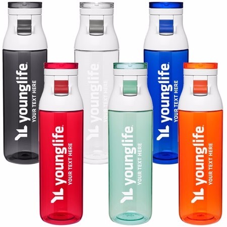 Everyone will love the new Jackson bottle by Contigo with customizable Young Life logo. 24oz single wall (BPA-free) Eastman Tritan (TM) copolyester bottle with threaded lid, one-touch push-button, and carrying loop.