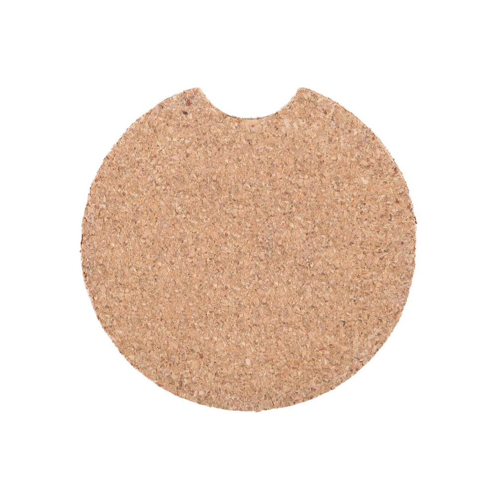Made of cork, this coaster effortlessly absorbs condensation and spills, keeping cup holders clean and dry. Its hypoallergenic, anti-microbial, and anti-fungal properties promote a healthy environment. Designed to fit into standard cup holders, it features a convenient thumb notch for easy removal and cleaning. Add your brand for a touch of elegance and warmth to car interiors that customers will love, ensuring delightful driving experiences.