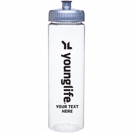 25 oz single wall (BPA free) customizable PET bottle with threaded push/pull lid proudly made in the U.S.A. Hand wash only. Do not microwave.