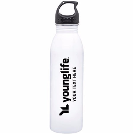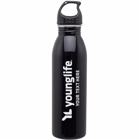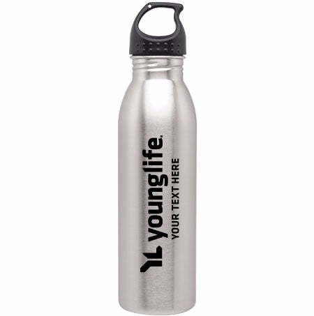 - 24 oz h2go customizable single wall stainless steel water bottle with threaded lid, perfect to take along on morning workouts