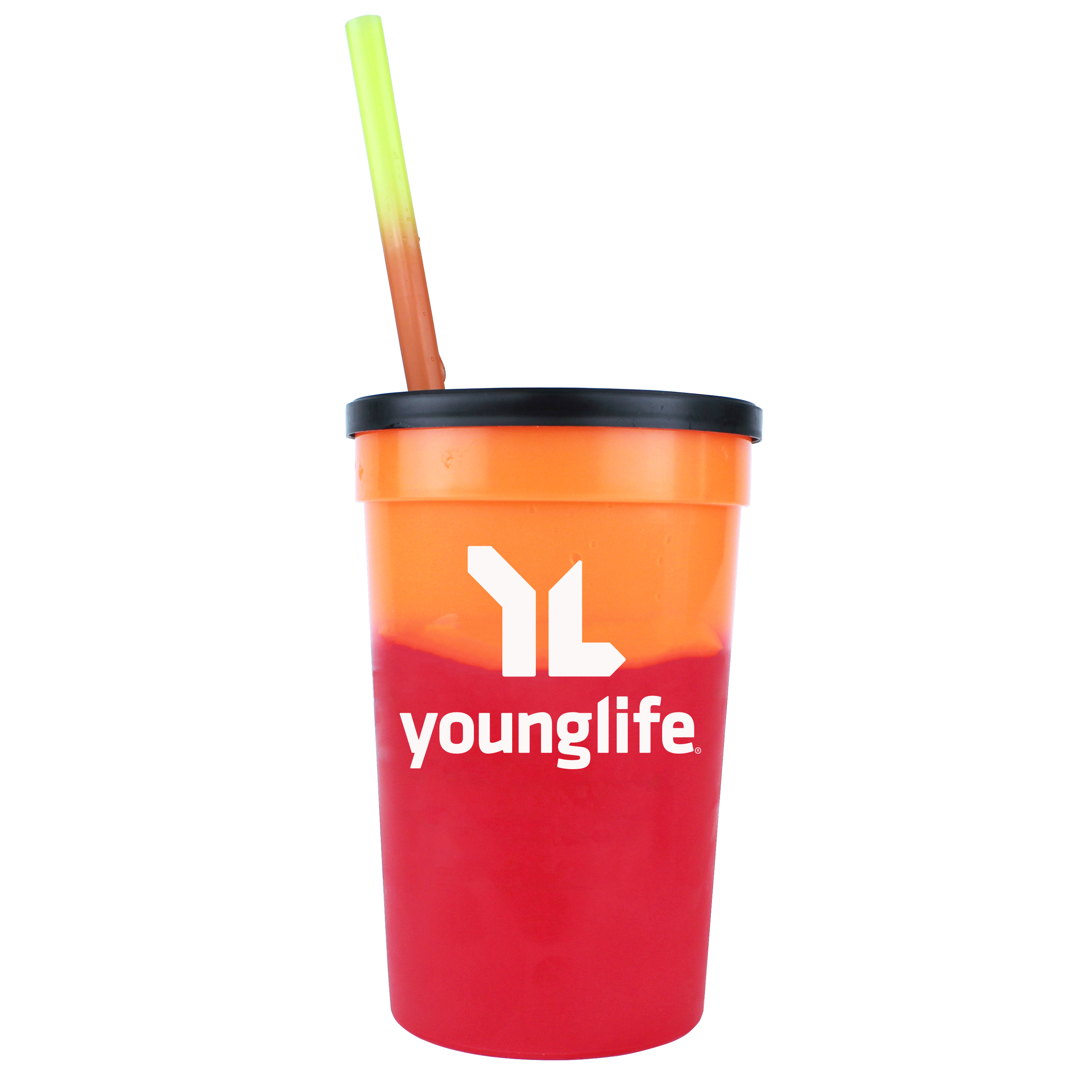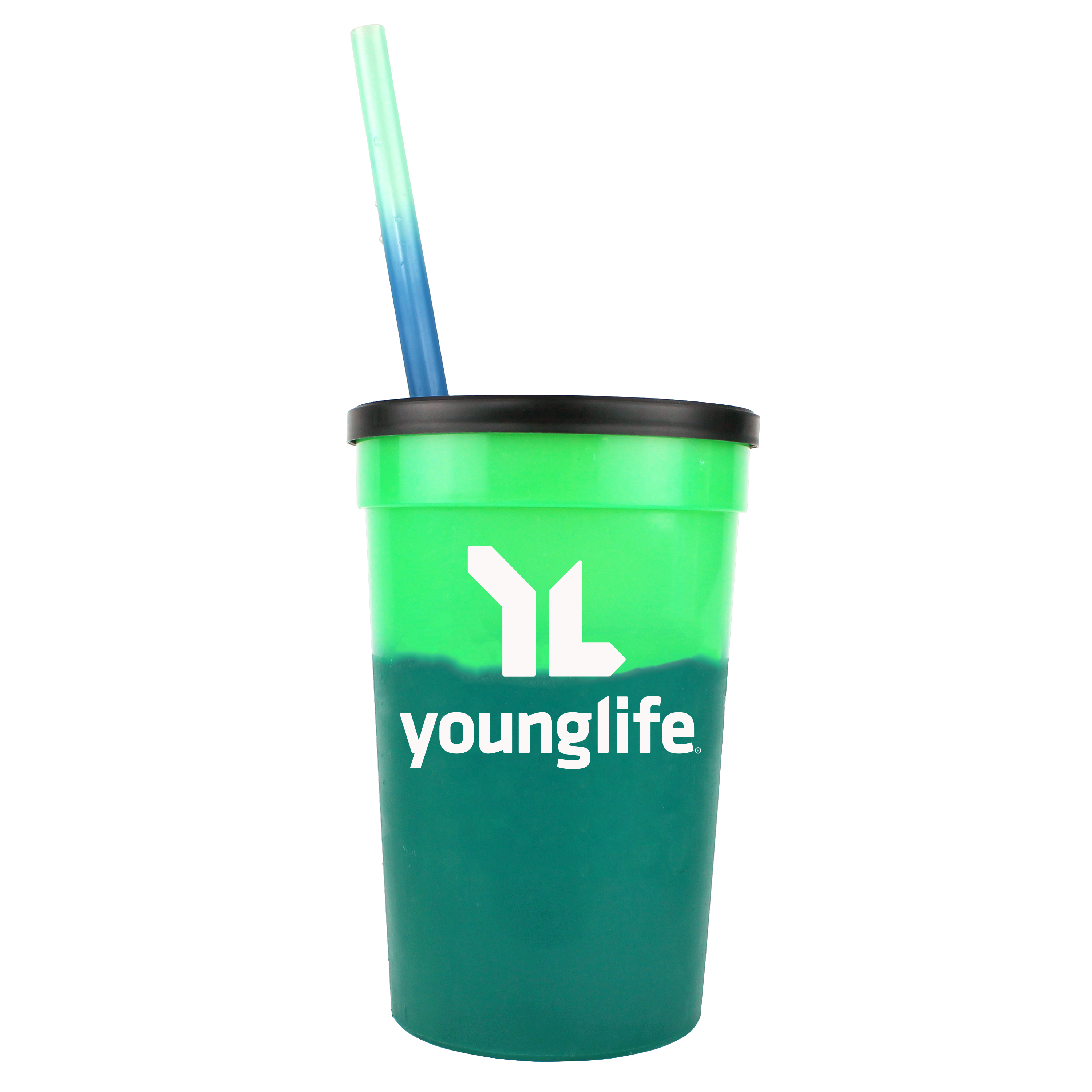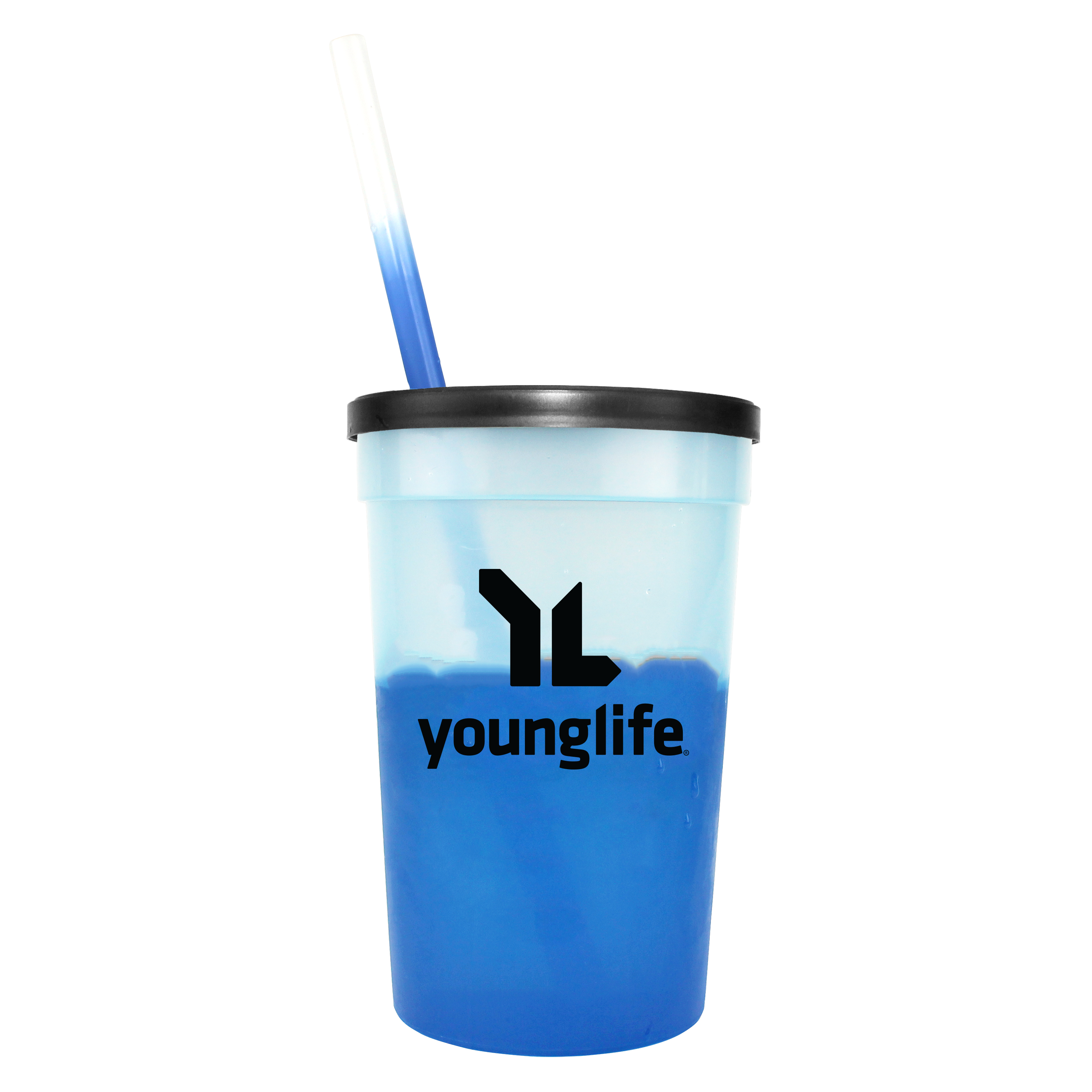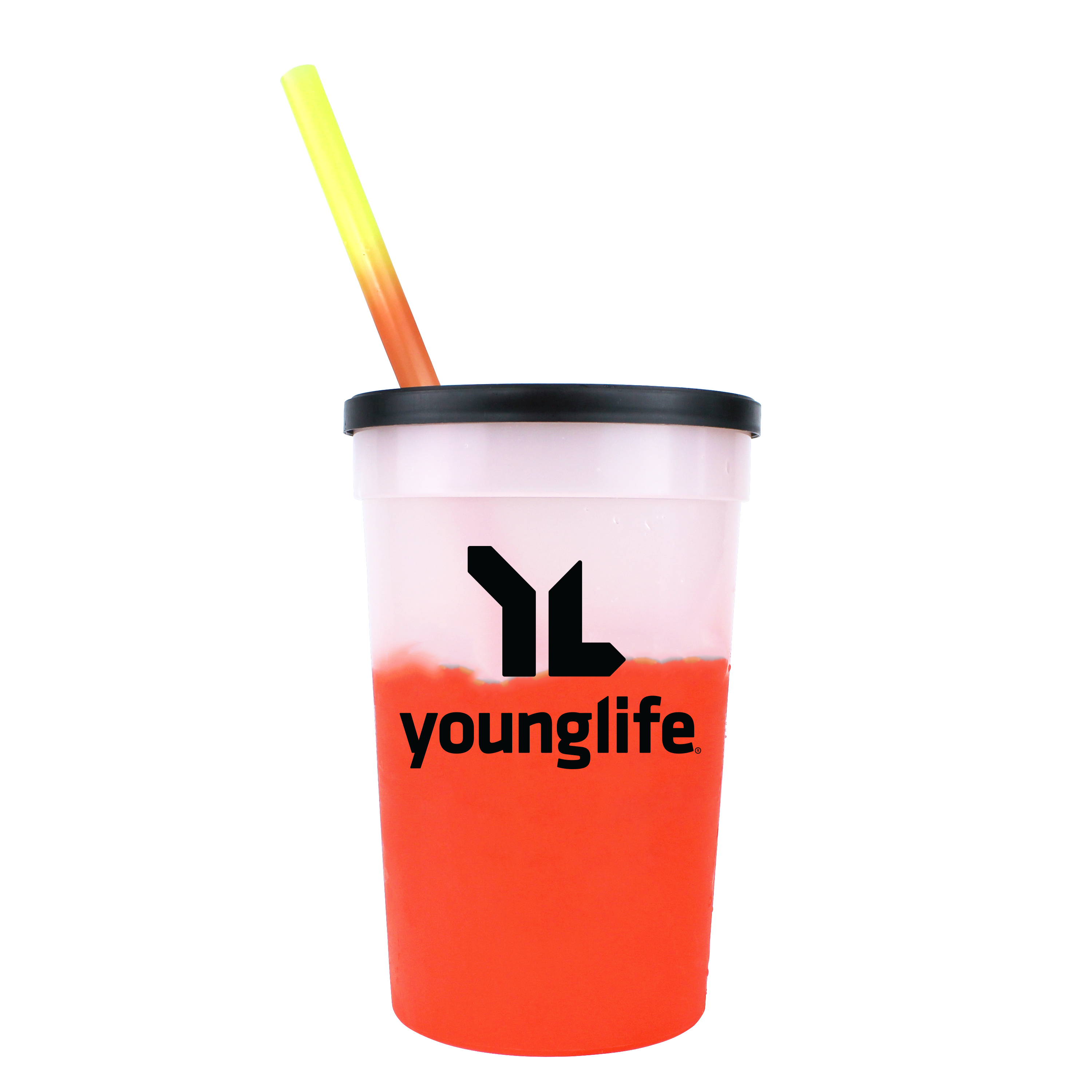 22 oz. Mood Stadium Cup/Straw/Lid Set. Set includes custom printed cup, lid, and blank straw. Stadium cup and straw changes color with ice cold liquids. Durable plastic. 11 vibrant cup colors, 8 vibrant straw colors, Lid offered in black or white. Cups, straws and lids, can be mix and matched. Top shelf dishwasher safe