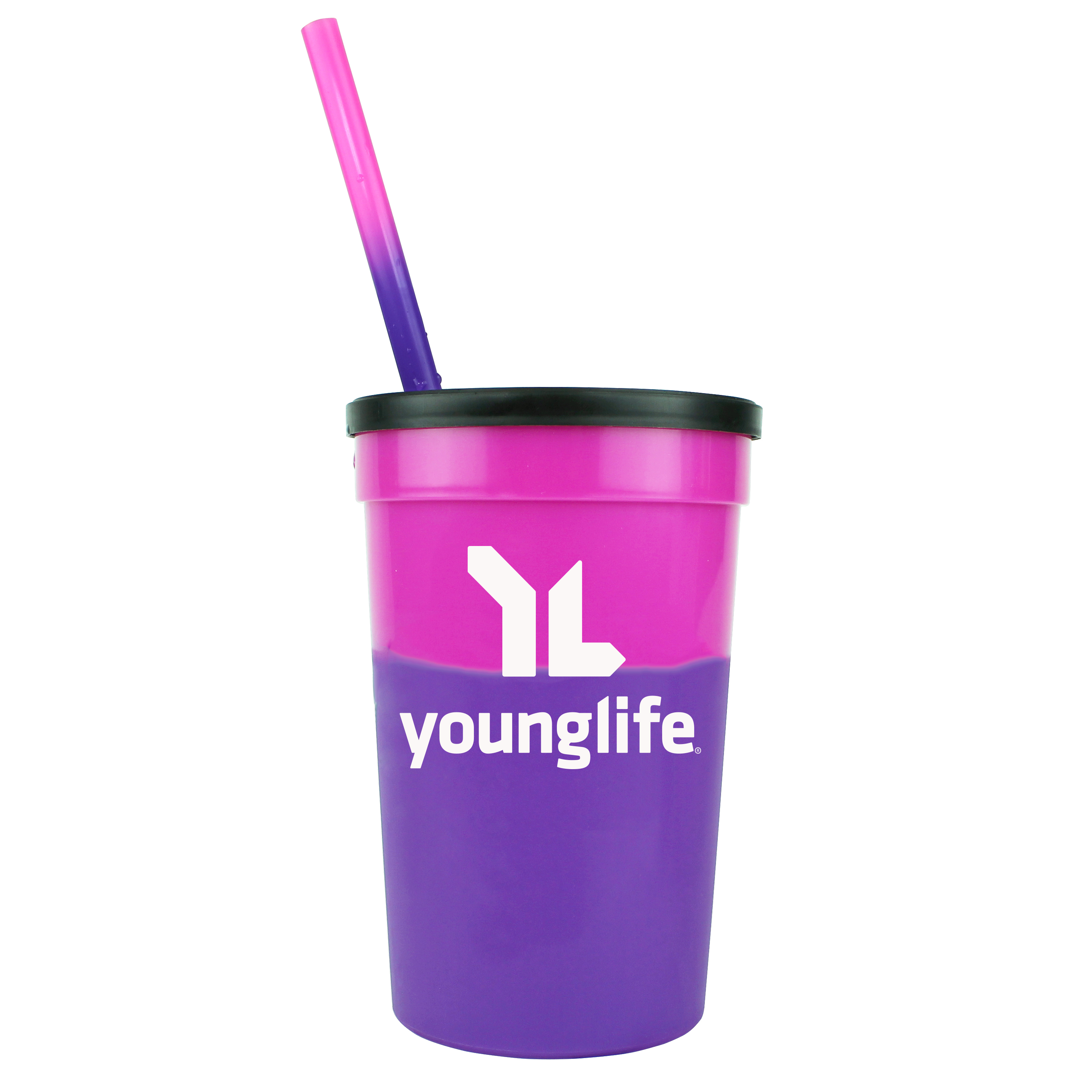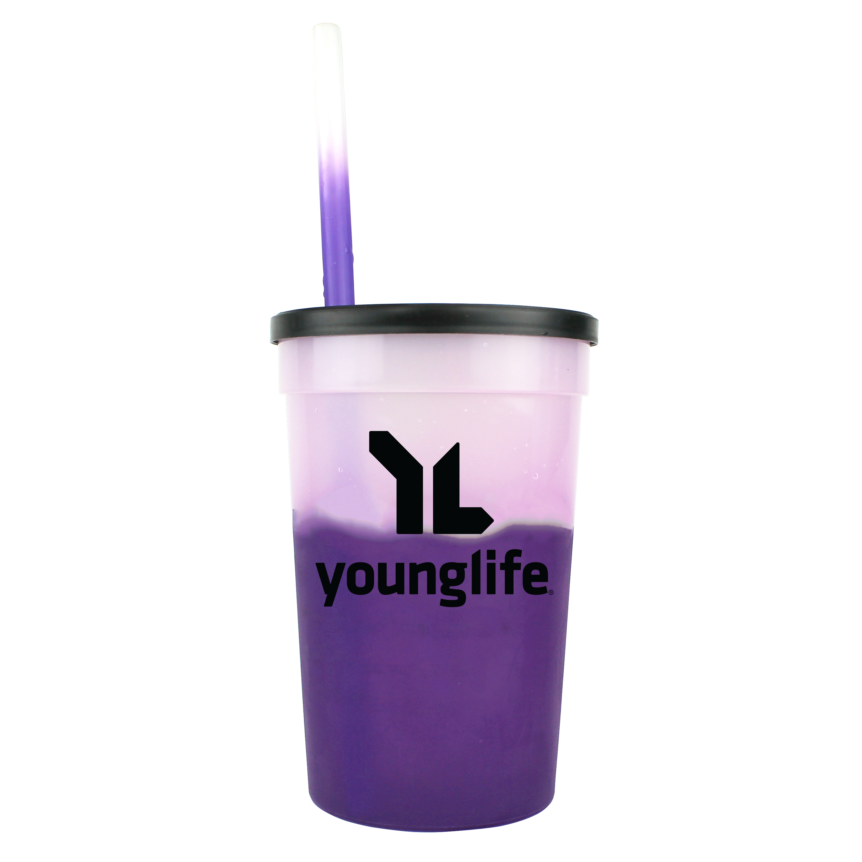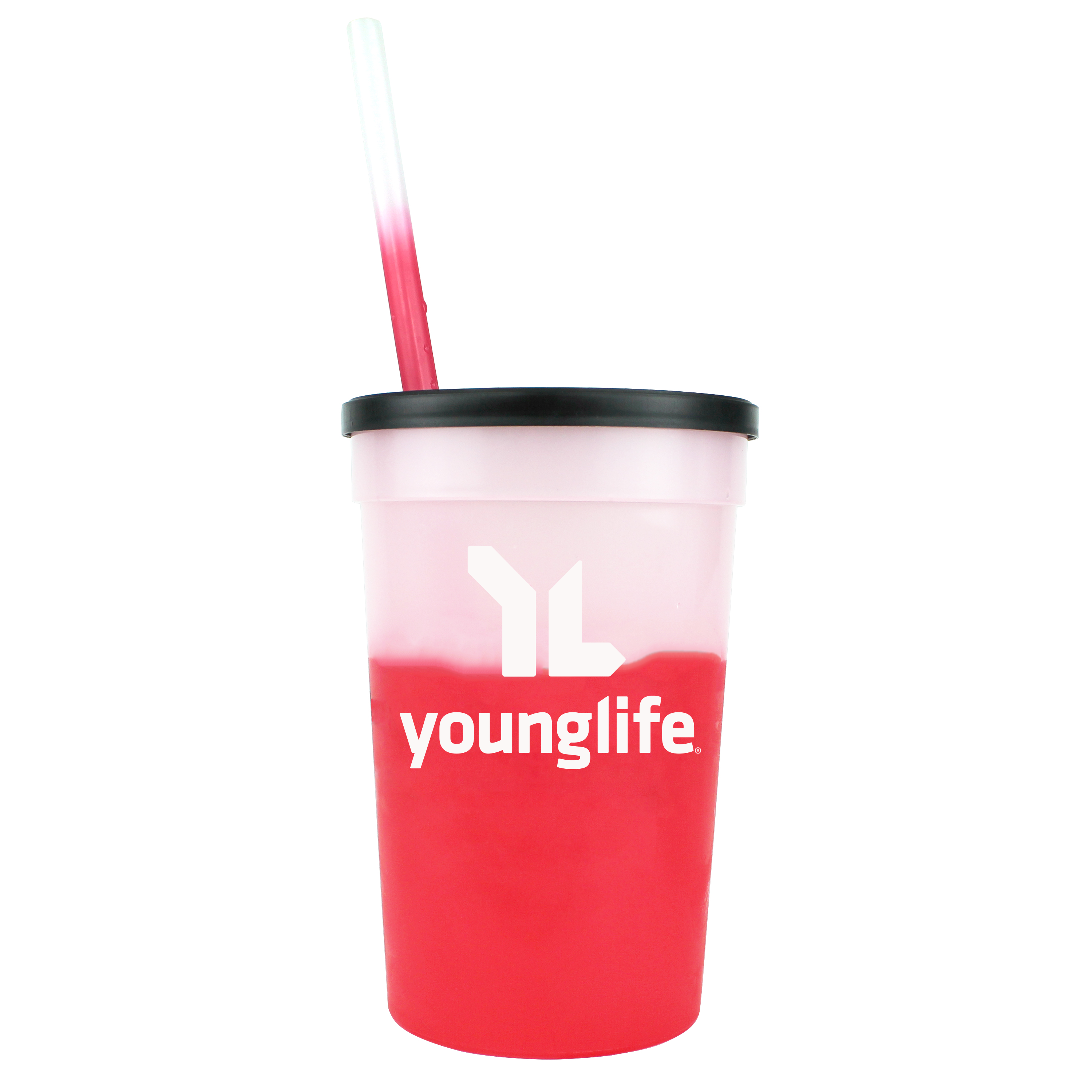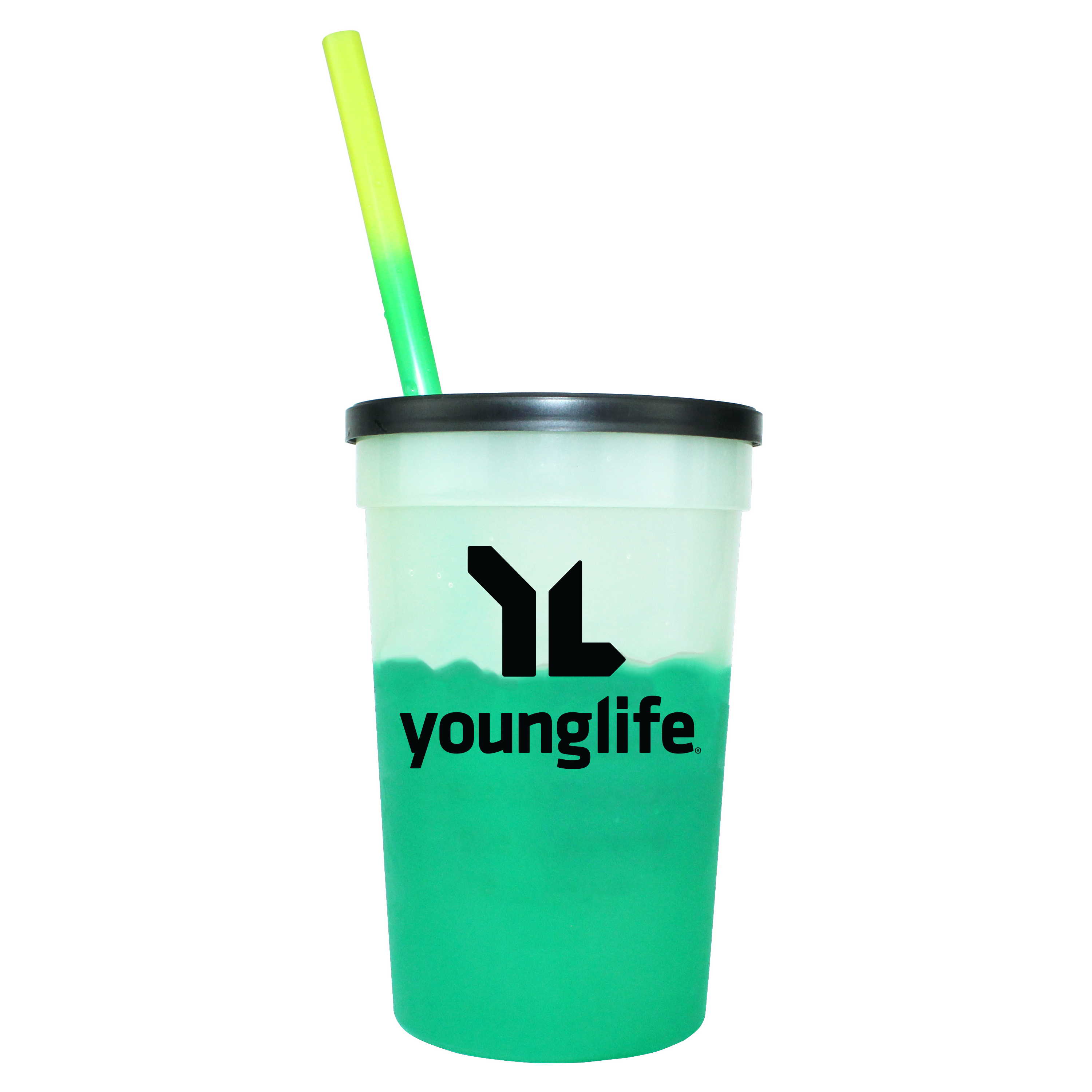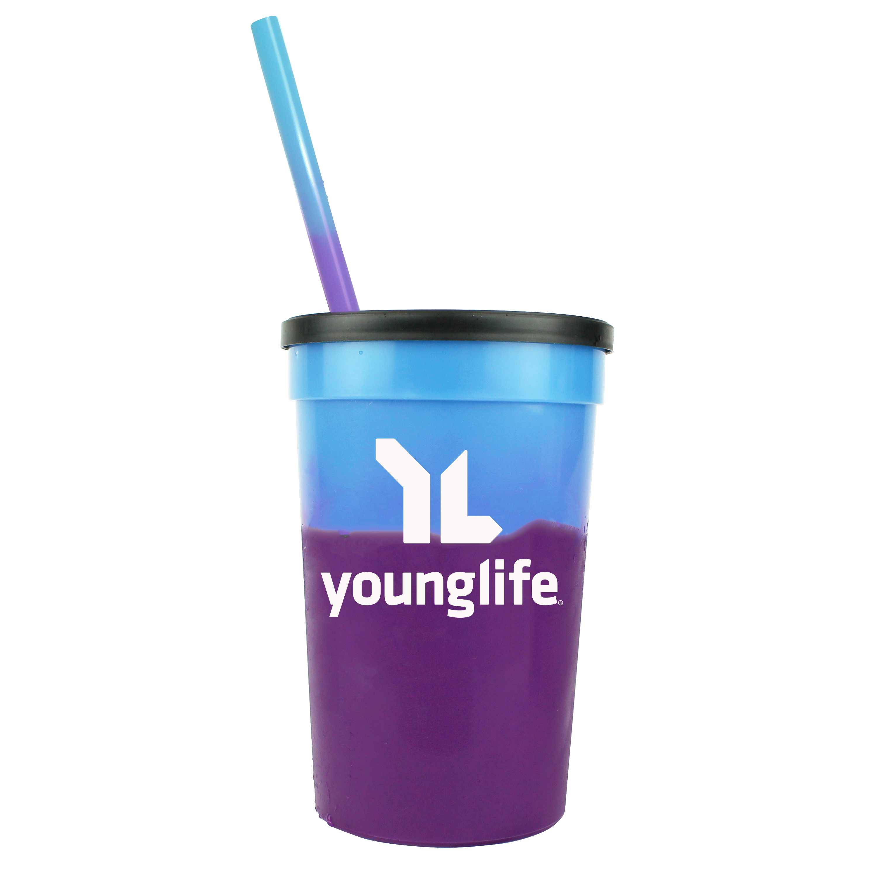 22 oz. Mood Stadium Cup/Straw/Lid Set. Set includes custom printed cup, lid, and blank straw. Stadium cup and straw changes color with ice cold liquids. Durable plastic. 11 vibrant cup colors, 8 vibrant straw colors, Lid offered in black or white. Cups, straws and lids, can be mix and matched. Top shelf dishwasher safe