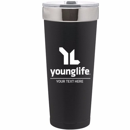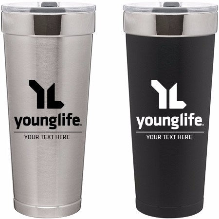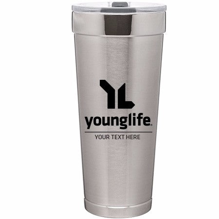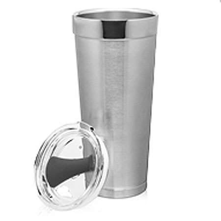 20.9 oz double wall 18/8 stainless steel thermal tumbler with copper vacuum insulation, high polish accent and push-on acrylic swivel lid.