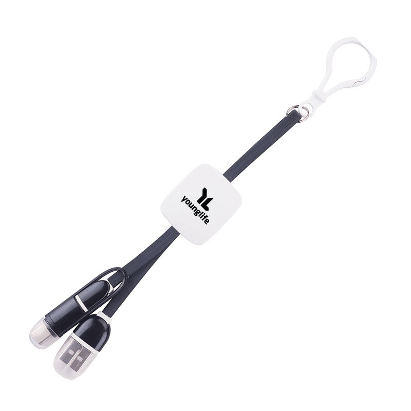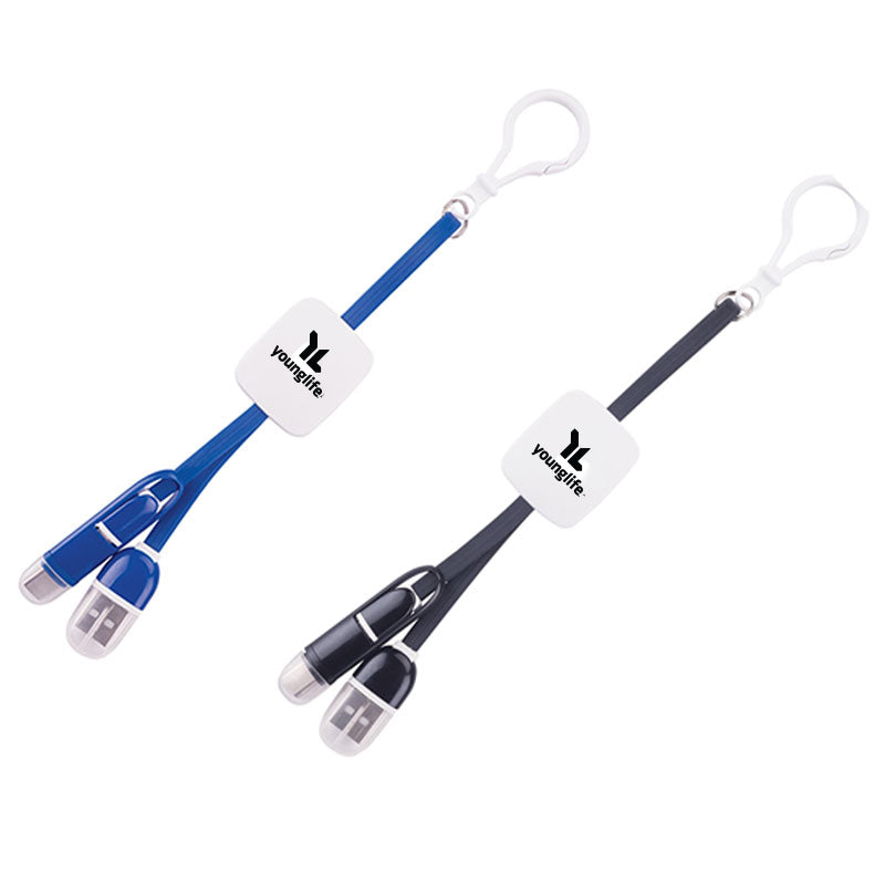 - Includes: Standard USB, Dual Micro USB/Lightning, Tethered Type C USB Connectors
