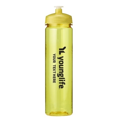 If you want a budget-friendly gift that someone will use over and over again, look no further than the Refresh 24 oz Sport Bottle. It's the perfect item for every event and a colorful way to display to display the Young Life logo! Food grade PET bottle with a thin, Euro shape. Wide-mouth top lets you easily add ice cubes. Features high-gloss finish and a leak resistant push-pull lid. Hand wash only. BPA free.