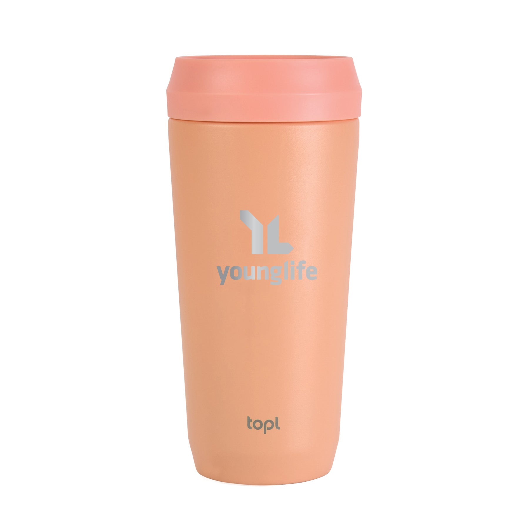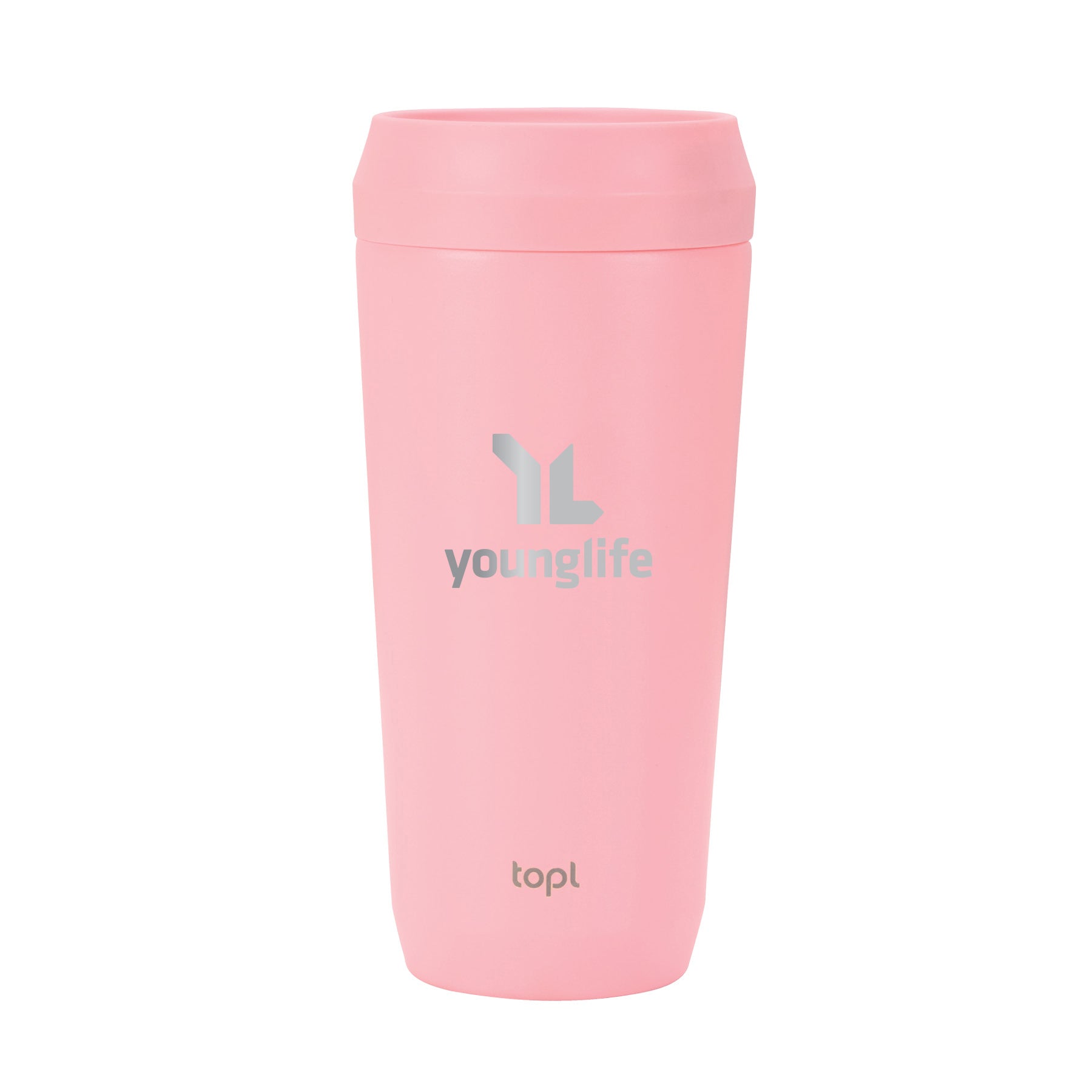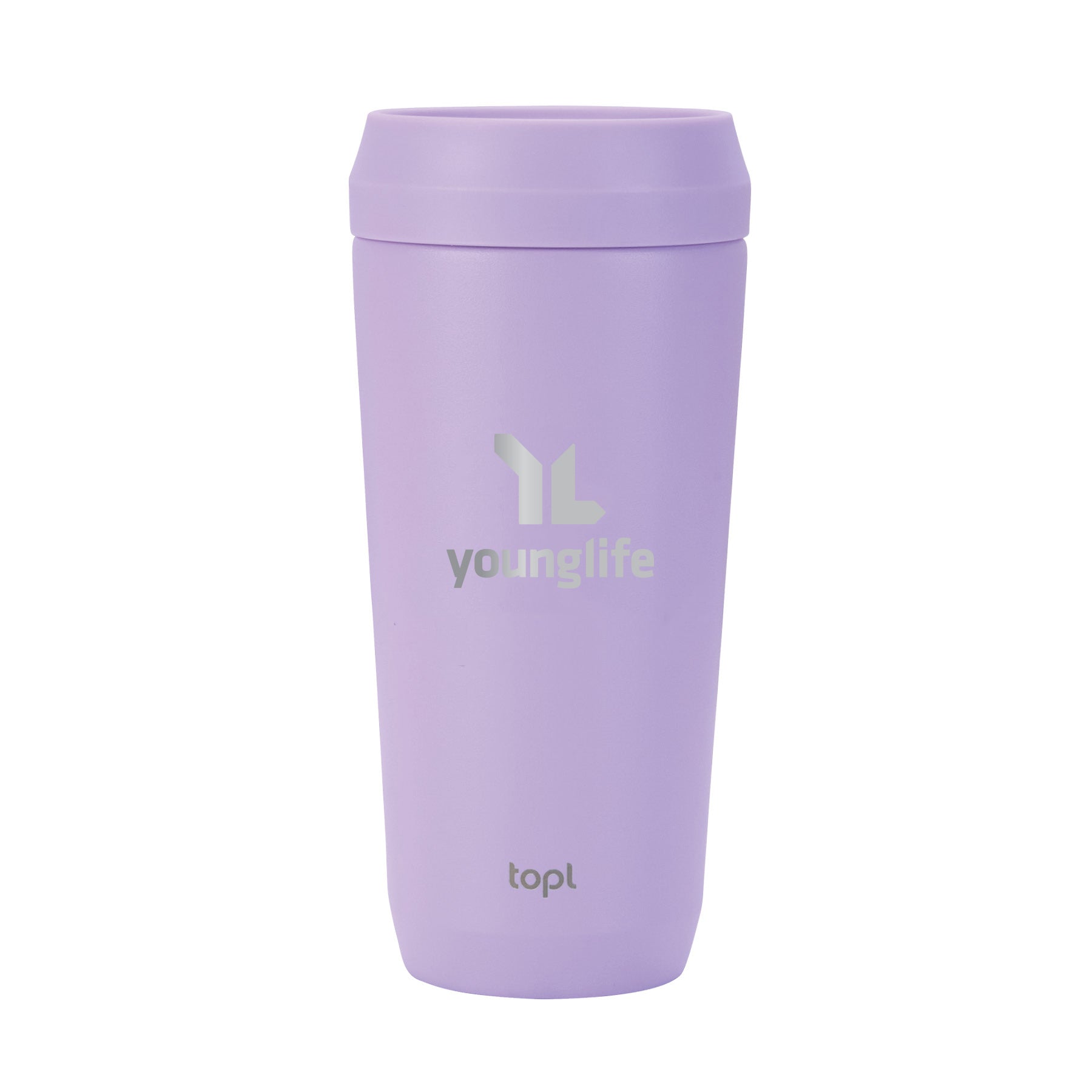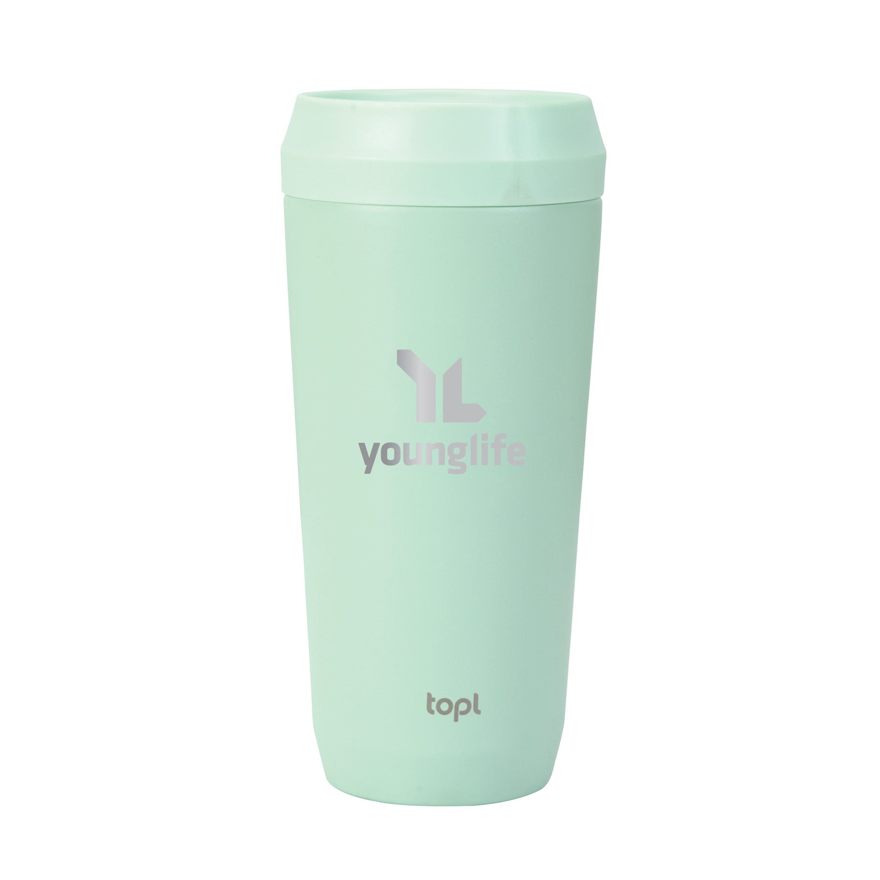 - Meet the 16 oz. TOPL® Travel Cup – your everyday essential for sipping on the move. Engineered for performance and convenience, it features a double wall vacuum insulated body made from premium, eco conscious 18/8 recycled stainless steel to keep drinks hot or cold for hours. The durable powder-coat finish is sweat-proof and resists smudges, making it ideal for daily use. At the heart of the design is the innovative 360° sipping lid crafted from recycled polypropylene. It allows you to drink or fill from any angle, while a secure locking system prevents leaks, making it perfect for commuting, walking, or multitasking. Drink and refill without removing the lid! It also fully disassembles for thorough cleaning, ensuring your drink tastes fresh every time. A built-in reprogrammable NFC chip on the base gives you instant access to product details and care instructions—just tap your phone to stay connected. BPA-free and FDA compliant, this cup fits most coffee machines & car cup holders.