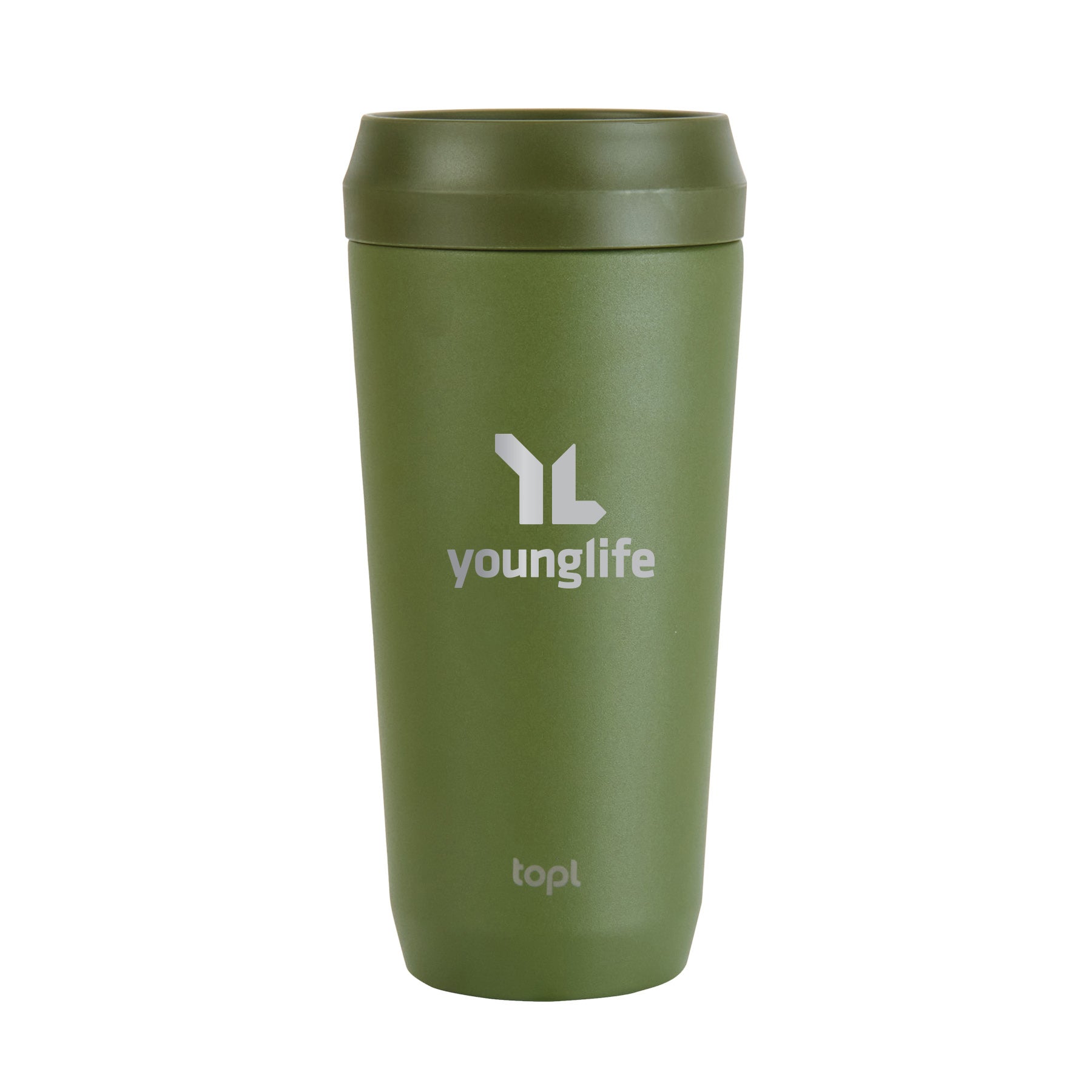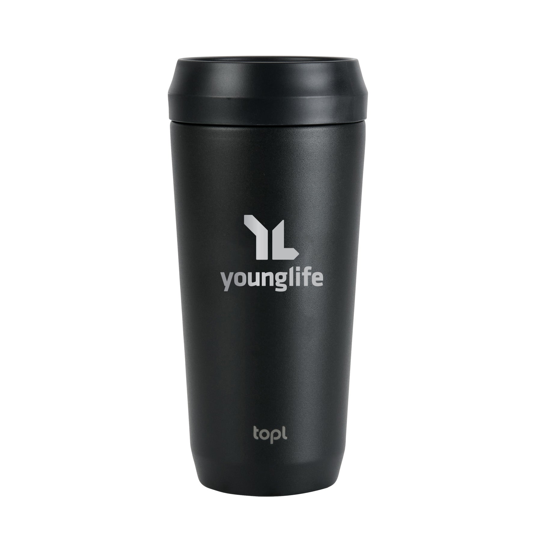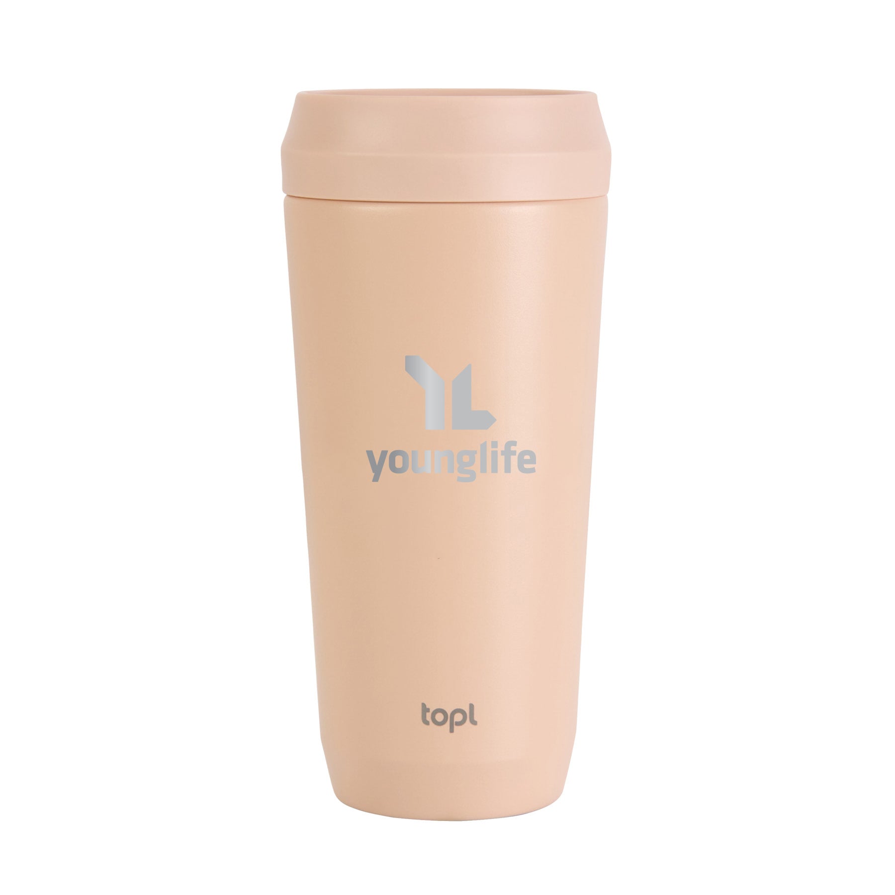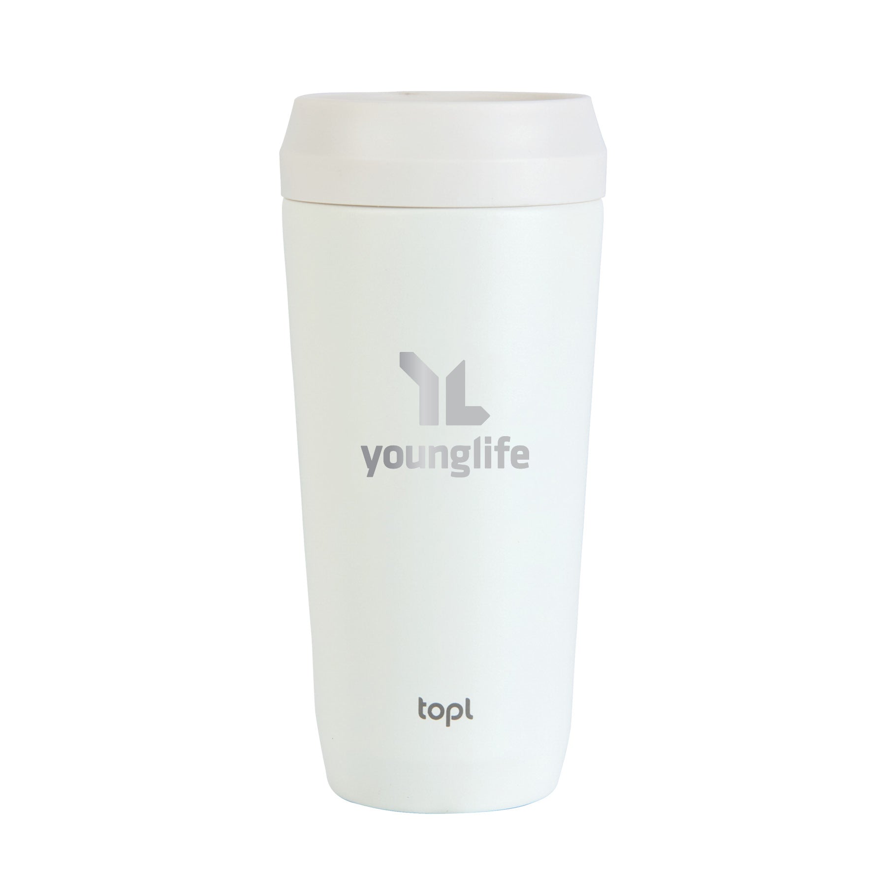 - Meet the 16 oz. TOPL® Travel Cup – your everyday essential for sipping on the move. Engineered for performance and convenience, it features a double wall vacuum insulated body made from premium, eco conscious 18/8 recycled stainless steel to keep drinks hot or cold for hours. The durable powder-coat finish is sweat-proof and resists smudges, making it ideal for daily use. At the heart of the design is the innovative 360° sipping lid crafted from recycled polypropylene. It allows you to drink or fill from any angle, while a secure locking system prevents leaks, making it perfect for commuting, walking, or multitasking. Drink and refill without removing the lid! It also fully disassembles for thorough cleaning, ensuring your drink tastes fresh every time. A built-in reprogrammable NFC chip on the base gives you instant access to product details and care instructions—just tap your phone to stay connected. BPA-free and FDA compliant, this cup fits most coffee machines & car cup holders.