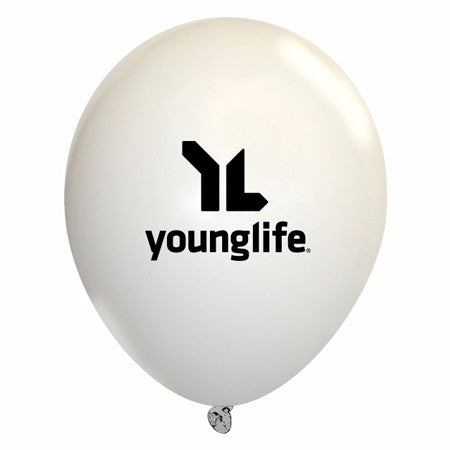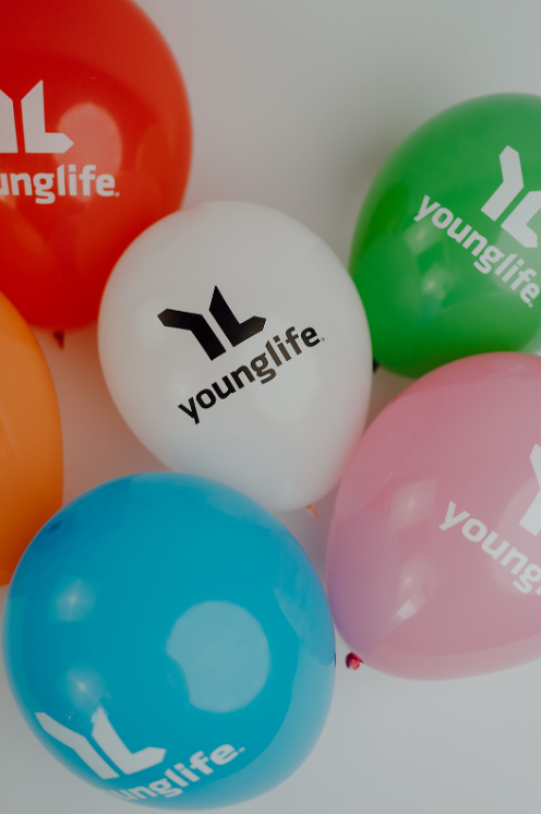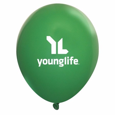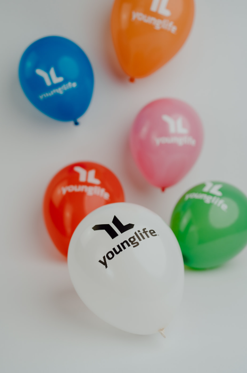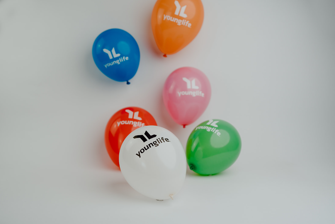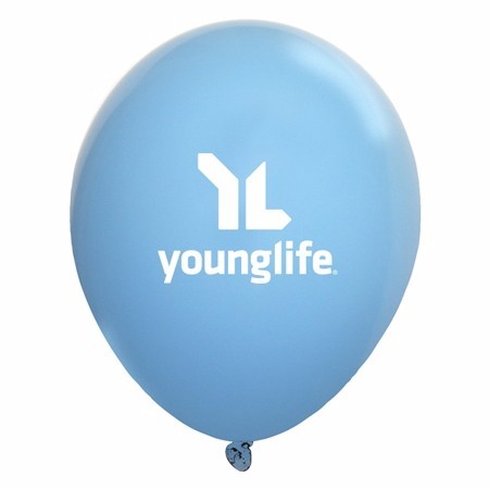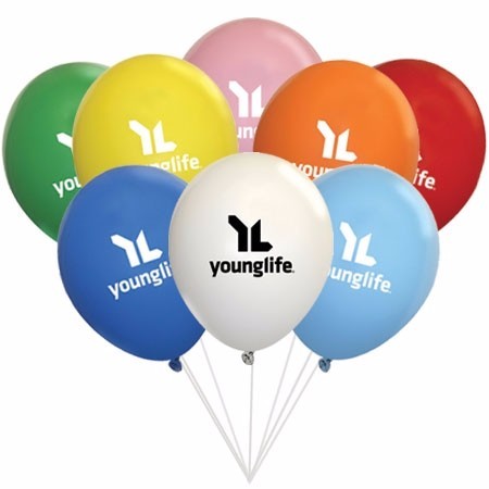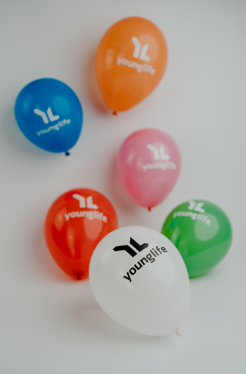 Colorful latex balloons with the Young Life logo. Sold in multiples of 10 assorted colors per pack. Helium quality, 100% biodegradable natural latex. Made in the USA.