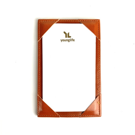 For both holding business cards and taking notes on the go, this Faux Leather Jotter holds 3 x 5 in. note cards and business cards and features its own hard writing surface.