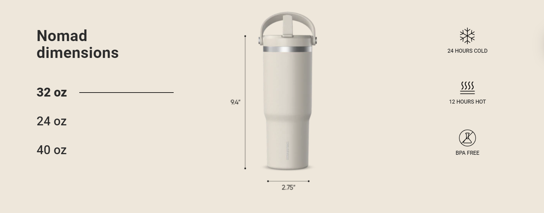 Hydrapeak Nomad 32 oz avec poignée et couvercle à paille