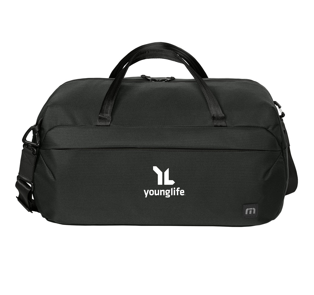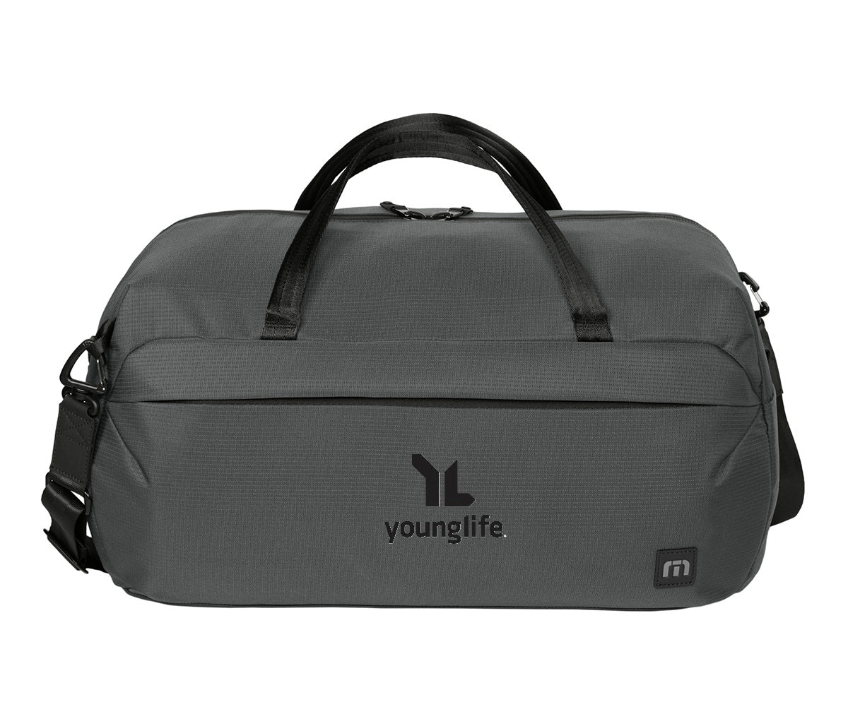 • Detachable, adjustable, padded shoulder strap with printed TravisMathew script logo