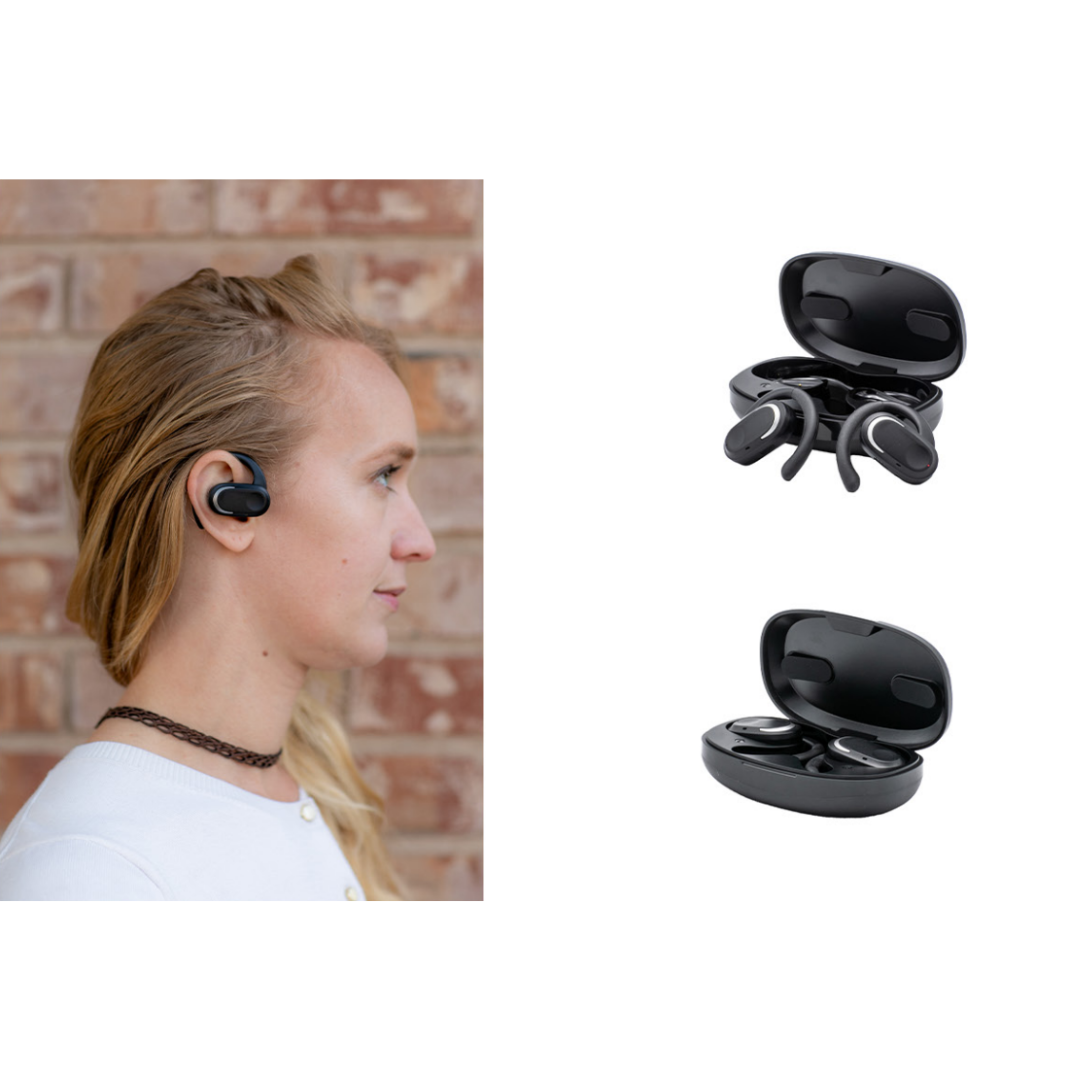 Aerotunes vous offre la liberté de savourer vos morceaux préférés avec un Conception à angle de rotation réglable à 120° sur leurs crochets d'oreille, ils se nichent confortablement sur la plupart des oreilles, offrant un ajustement sûr et personnalisé.