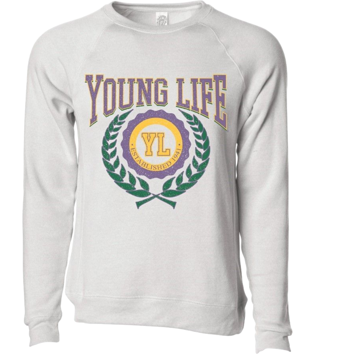 Un design universitaire classique sur un ras du cou unisexe en mélange spécial de poids moyen.