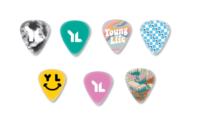 Médiators de guitare haut de gamme de poids moyen dans une variété de motifs Young Life.
