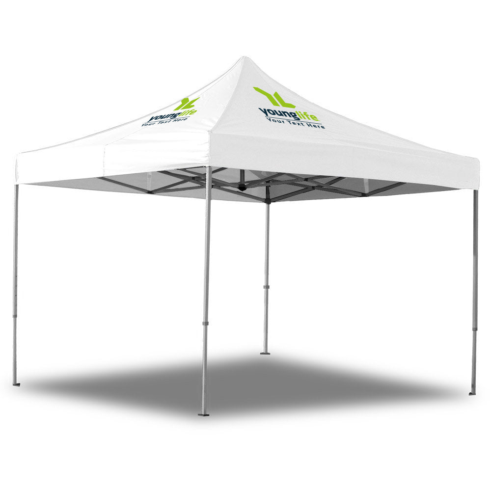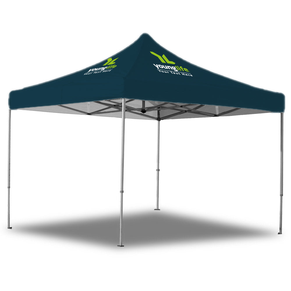 Canopies are the perfect way to get noticed at events. Each one is printed using a superior quality dye sublimation process. They include 4 fabric panels that can feature up to 4 different designs (one for each side). Each panel is sewn together and can easily be set up on a 10’ x 10’ aluminum pop-up canopy tent.