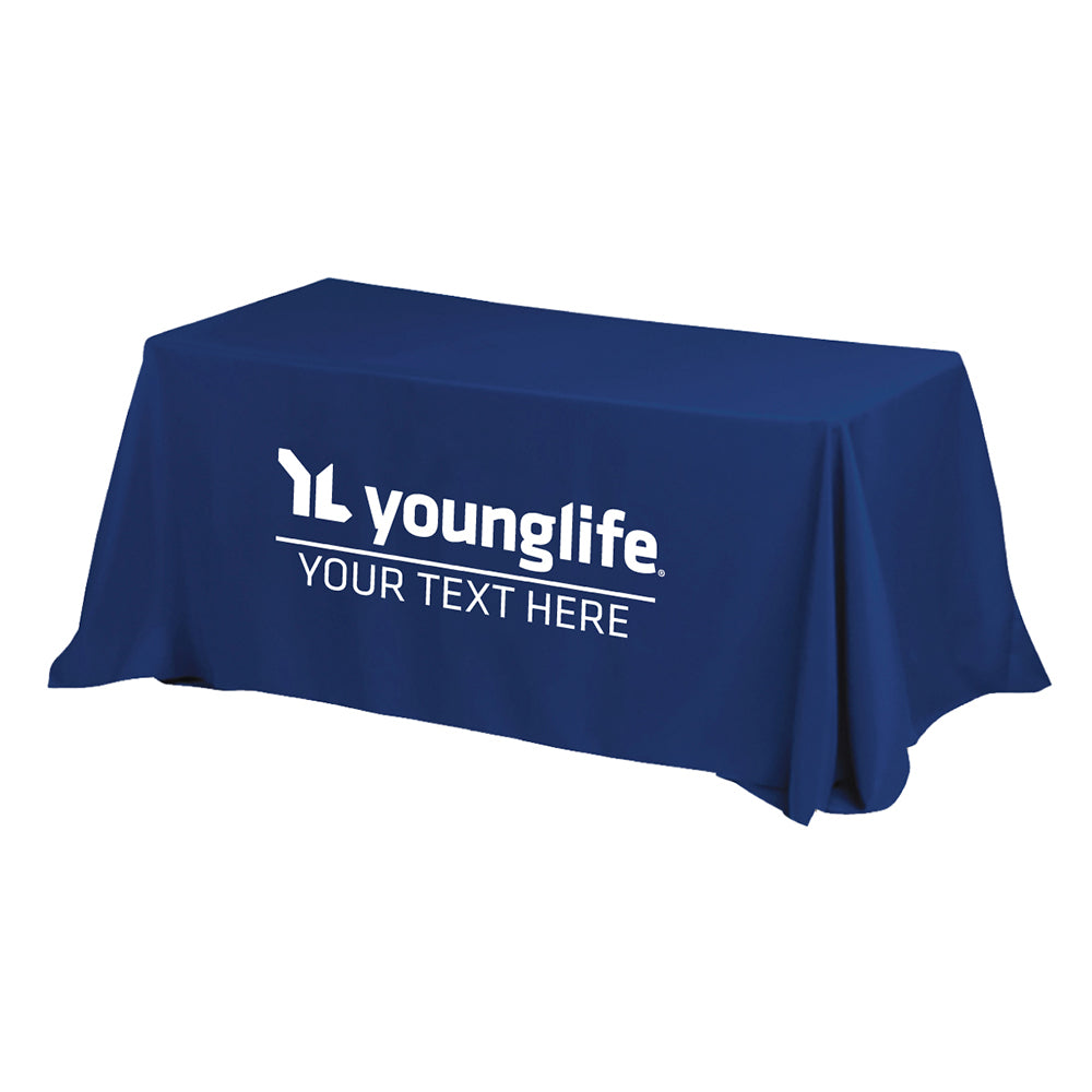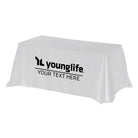 This large, 3-sided table cover has options to fit 6' or 8' tables. The price includes a 1 color / 1 location imprint on the front center of the fabric.