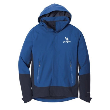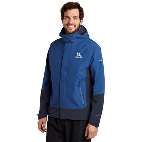 Two element-fighting WeatherEdge 5K/5K fabrics come together in this jacket for highly waterproof, breathable performance. Fully seam-sealed, this jacket also features the exclusive StormRepel ® durable water-repellent (DWR) coating for additional weather protection. Four-way stretch for easy mobility. Adjustable hood with locking drawcord, waterproof Vislon ® front zippered pockets, adjustable tab cuffs with hook and loop closures, embroidery access pocket. Adjustable locking drawcord hem. Contrast Eddie Bauer and WeatherEdge logos heat transfers on left sleeve. Made of 94/6 poly/spandex and 92/8 poly/spandex.