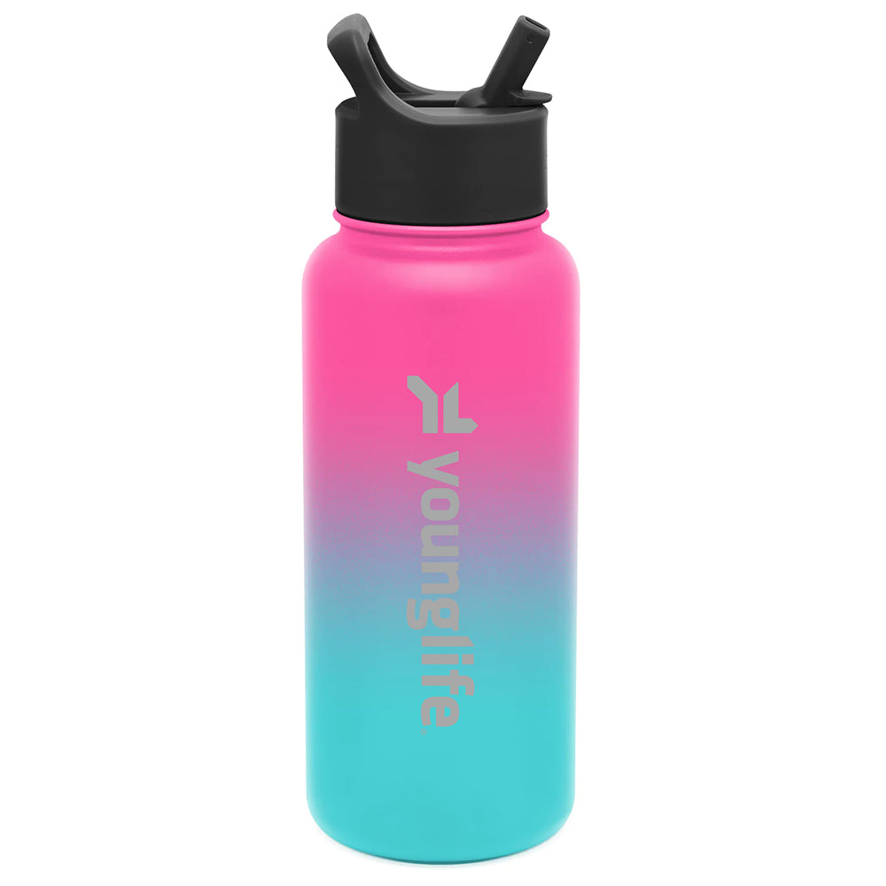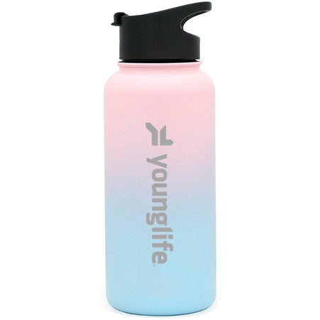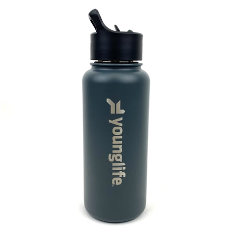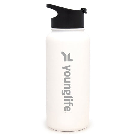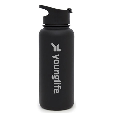 Perfect for the outdoors and the office, the Wide Mouth Summit Bottle will keep your beverage the temperature you desire while giving you a great drinking experience. A durable powder coated exterior gives this double-walled, vacuum insulated bottle a stylish finish. Laser etched with the Young Life logo.